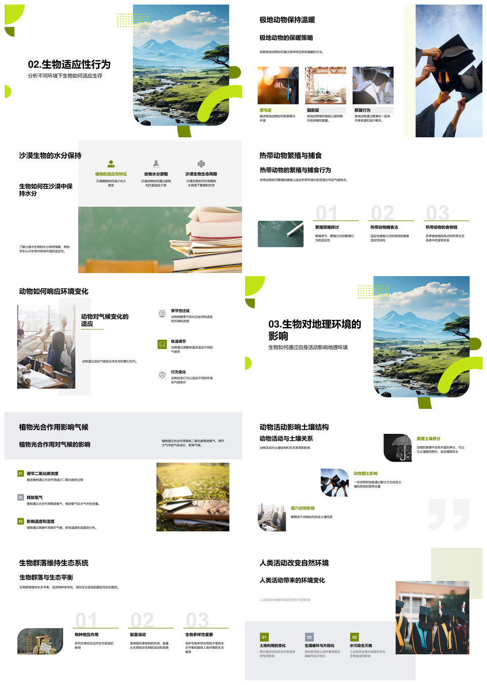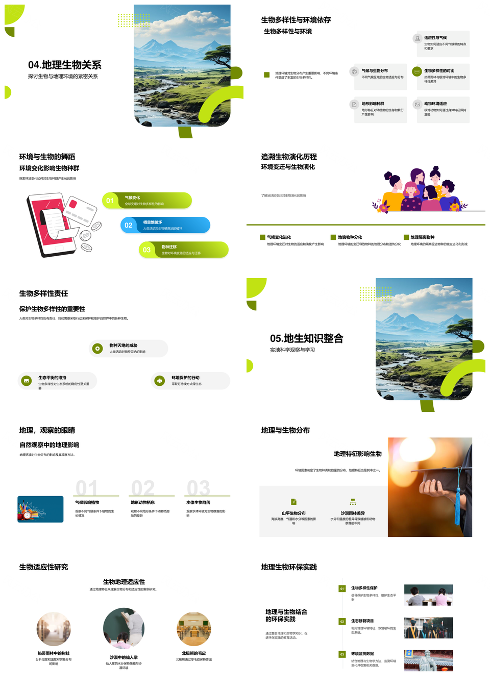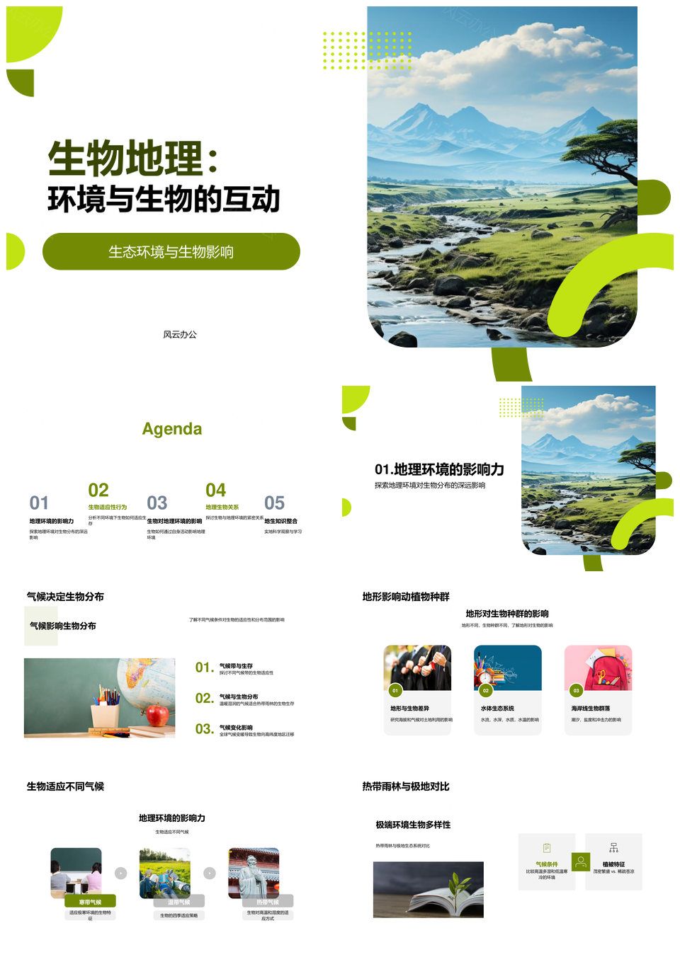 风云办公提供的生物地理环境互动与气候适应性演化PPT模板,下载格式为pptx,一共28页,作品中文字及图均可以修改和编辑,图片更改请在作品中右键图片并更换,文字修改请直接点击文字进行修改。
