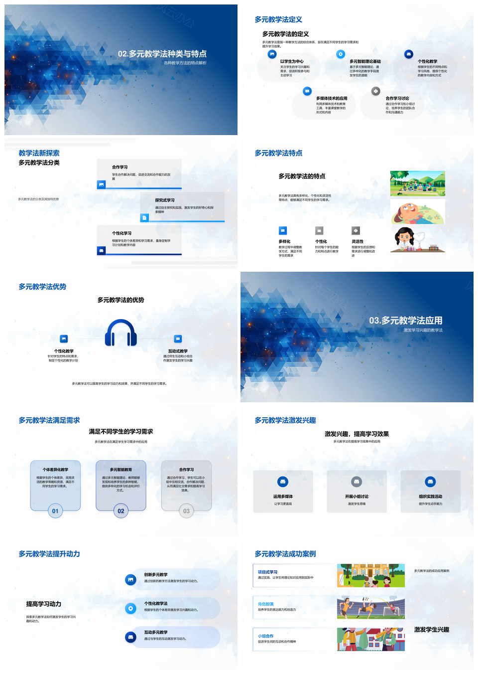 多元教学法应用智能理论提升学习动力质量PPT模板推荐