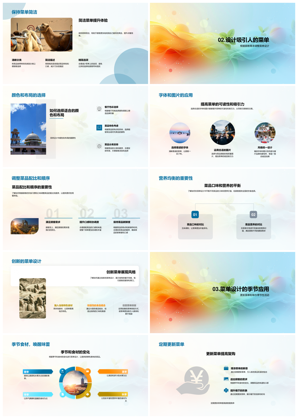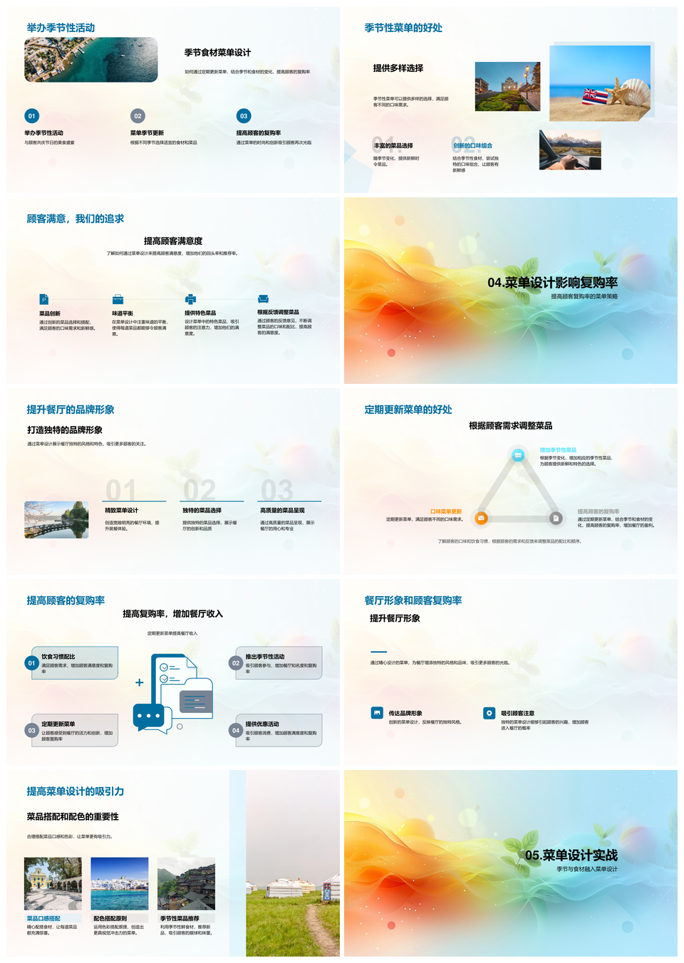 餐厅菜单设计优化培训厨师创新顾客需求营养均衡季节食材更新PPT模板推荐