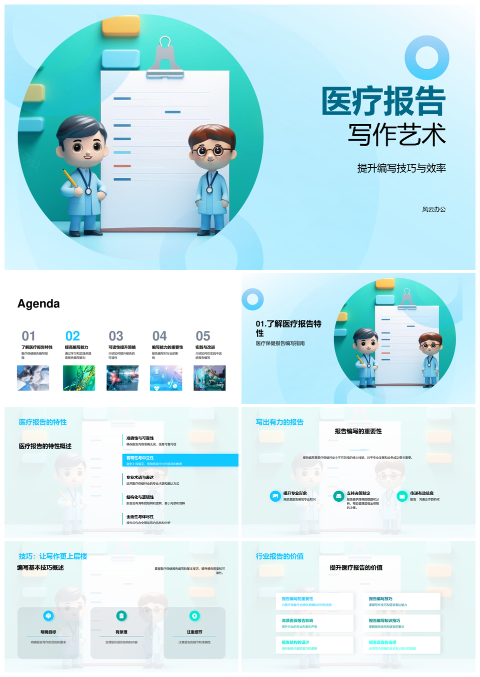 医疗报告编写技巧结构语言优化PPT模板推荐