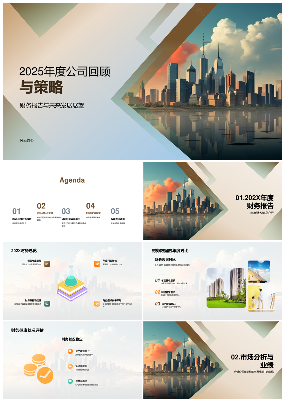 2025公司年度财务状况市场占比与摩天大楼战略PPT模板推荐