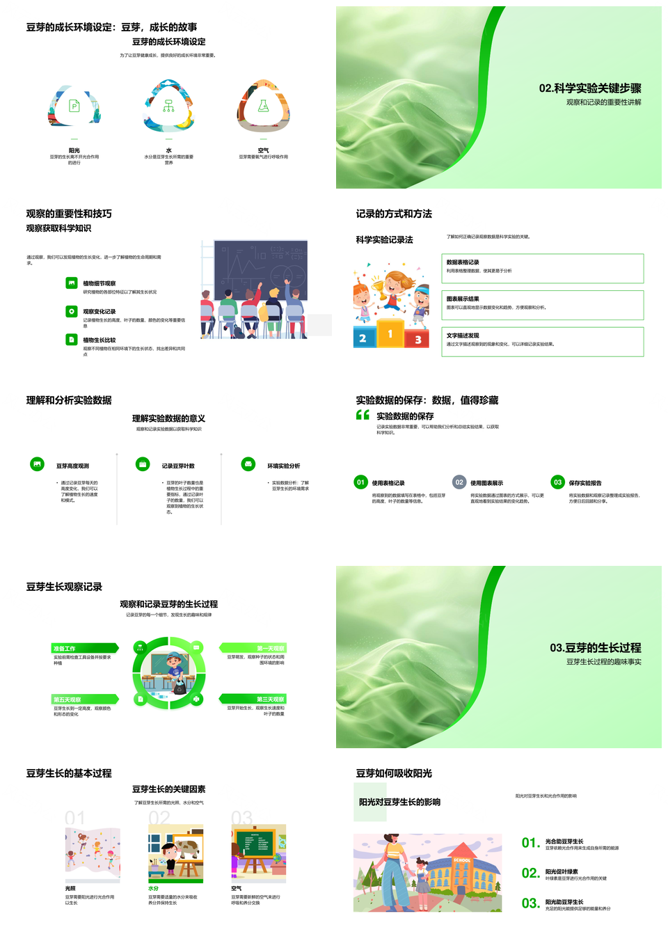 这是一张豆芽生长科学实验观察记录植物生长过程PPT模板,包含豆芽生长、科学实验、观察记录、植物、生长过程等主题内容,也可用作豆芽生长科学实验、科学实验观察记录、观察记录植物生长、记录植物生长过程、科学实验观察、实验观察记录、观察记录植物、记录植物生长、植物生长过程、生长科学实验、豆芽生长、科学实验、观察记录、植物生长、生长过程等PPT场景使用。 风云办公提供的豆芽生长科学实验观察记录植物生长过程PPT模板,下载格式为pptx,一共33页,作品中文字及图均可以修改和编辑,图片更改请在作品中右键图片并更换,文字修改请直接点击文字进行修改。