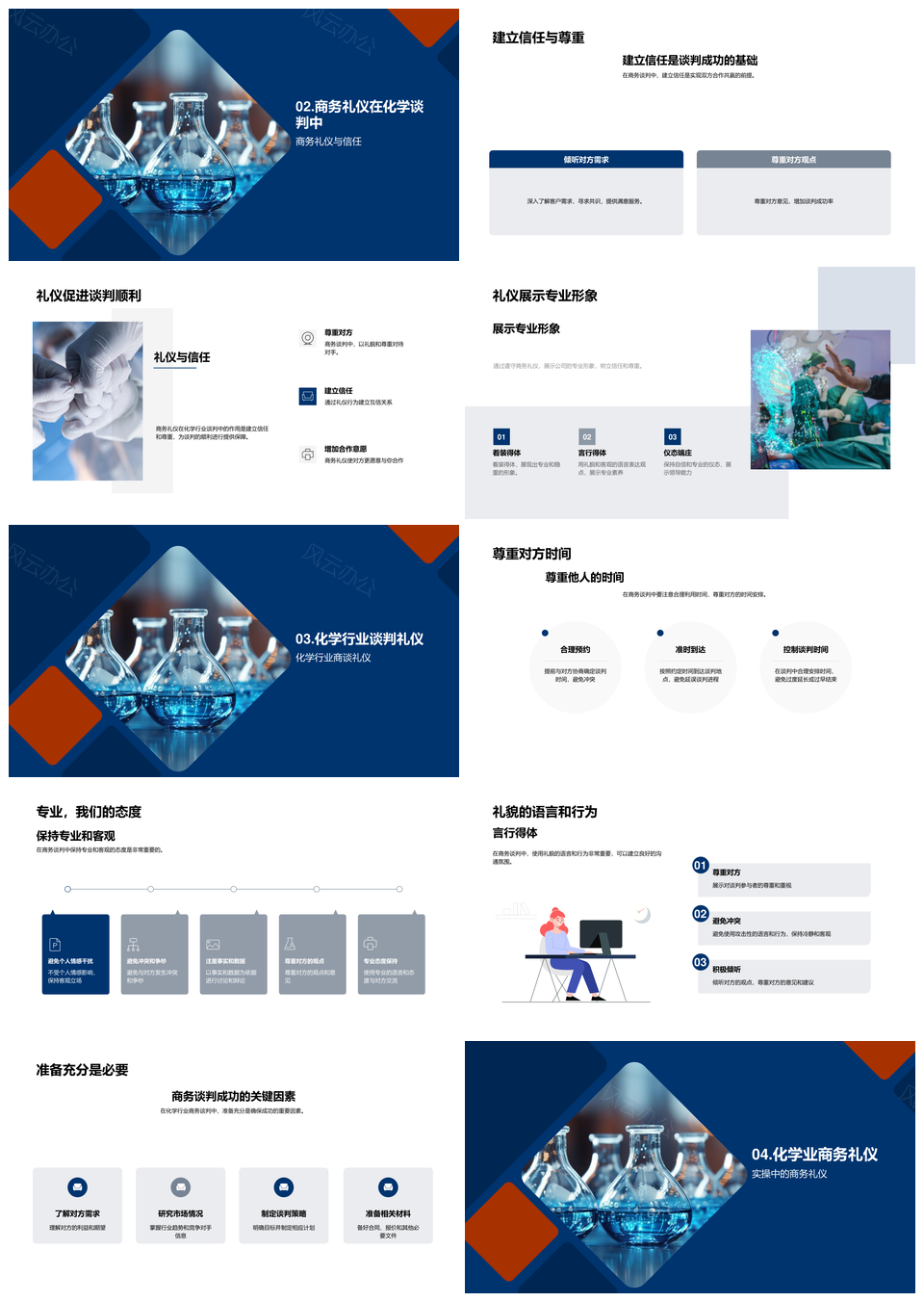 风云办公提供的化学行业商务谈判礼仪与专业技巧PPT模板,下载格式为pptx,一共26页,作品中文字及图均可以修改和编辑,图片更改请在作品中右键图片并更换,文字修改请直接点击文字进行修改。