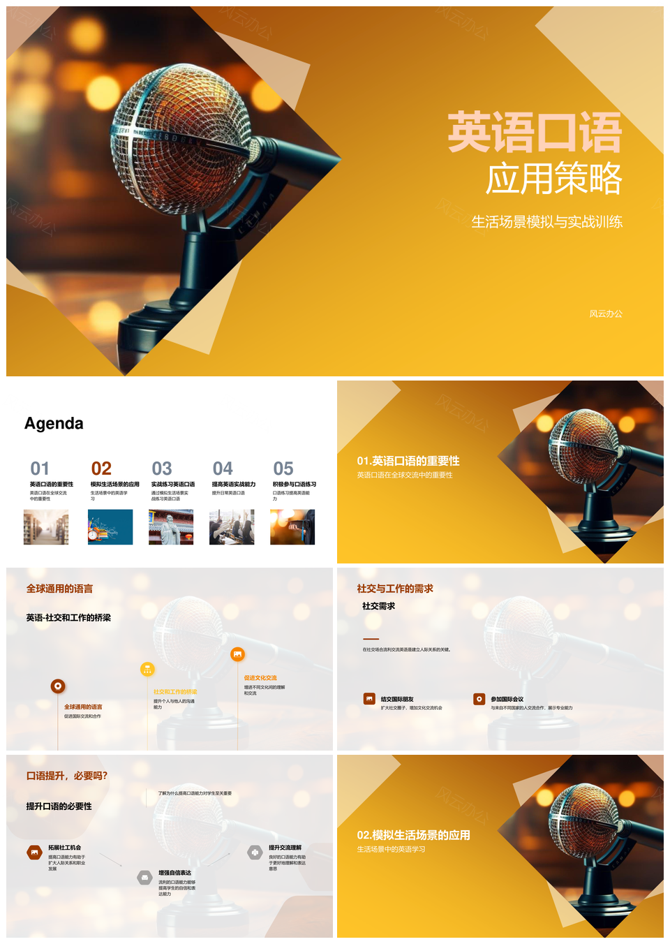 风云办公提供的英语口语生活社交实战教学课件策略PPT模板,下载格式为pptx,一共23页,作品中文字及图均可以修改和编辑,图片更改请在作品中右键图片并更换,文字修改请直接点击文字进行修改。