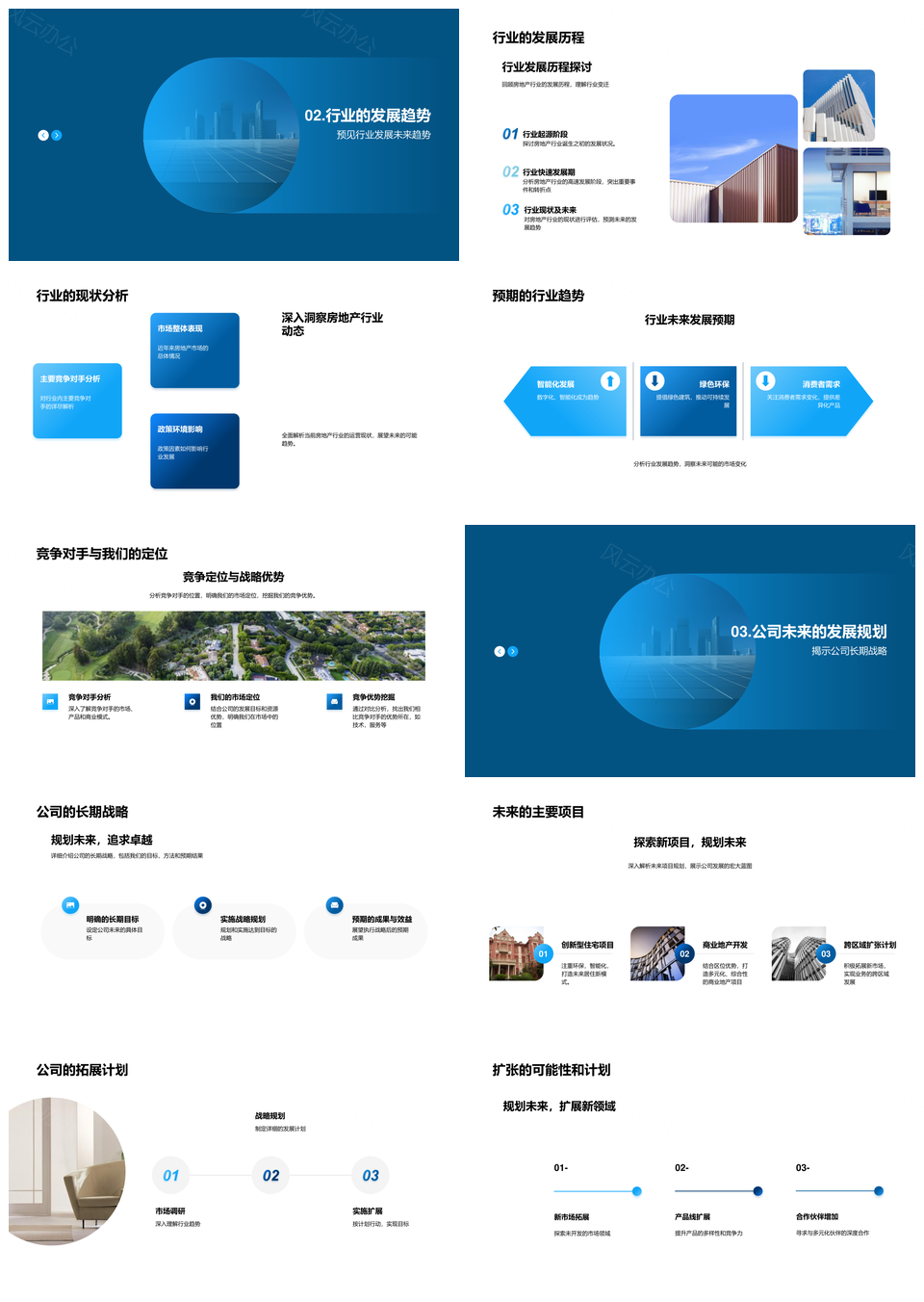 公司发展历程规划竞争力合作摩天大楼行业趋势对手PPT模板推荐