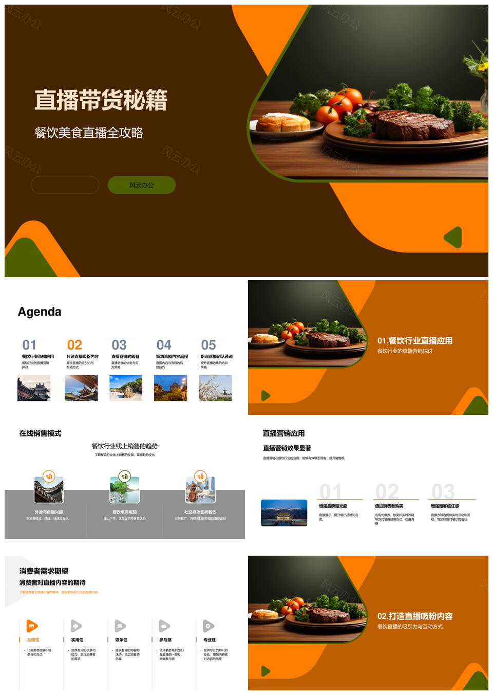 风云办公提供的餐饮双十一直播带货营销策划互动秘籍PPT模板,下载格式为pptx,一共23页,作品中文字及图均可以修改和编辑,图片更改请在作品中右键图片并更换,文字修改请直接点击文字进行修改。