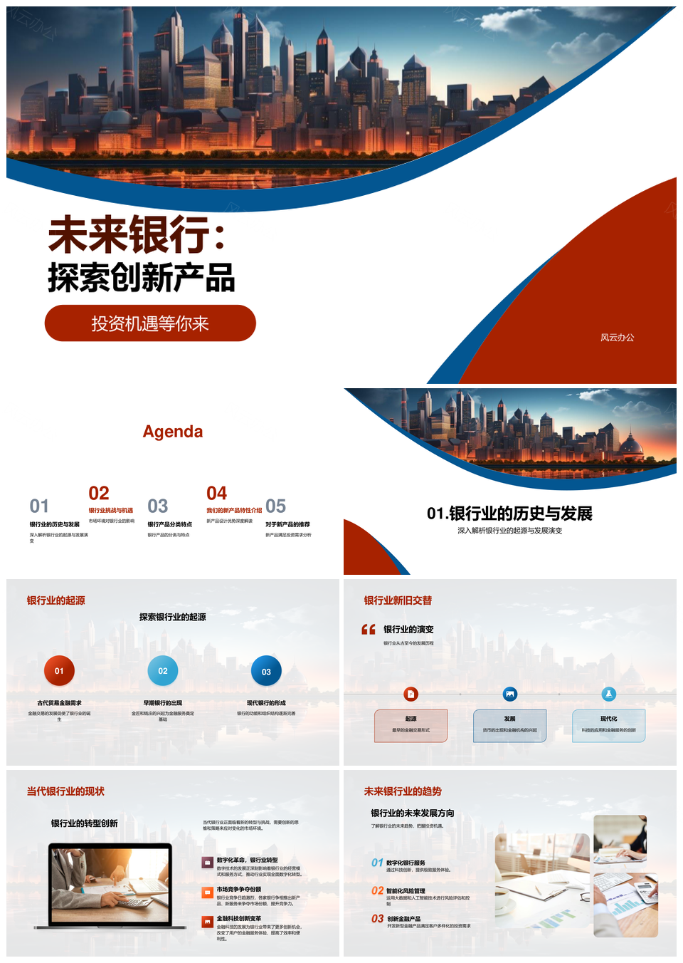 风云办公提供的未来银行演变趋势与创新产品投资机遇PPT模板,下载格式为pptx,一共25页,作品中文字及图均可以修改和编辑,图片更改请在作品中右键图片并更换,文字修改请直接点击文字进行修改。