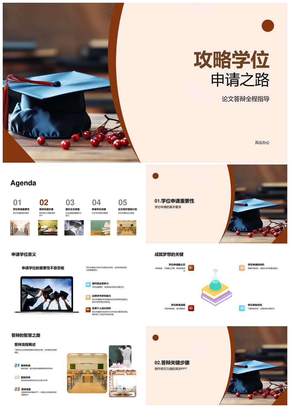 风云办公提供的学位论文答辩流程选题实验设计攻略PPT模板,下载格式为pptx,一共23页,作品中文字及图均可以修改和编辑,图片更改请在作品中右键图片并更换,文字修改请直接点击文字进行修改。