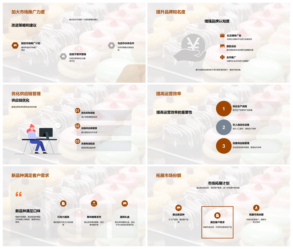 这是一张糕点糖果批发业务季度总结市场规模增长趋势PPT模板,包含糕点糖果、批发业务、季度总结、市场规模、增长趋势等主题内容,也可用作糕点糖果批发业务、批发业务季度总结、季度总结市场规模、市场规模增长趋势、糕点糖果批发、批发业务季度、业务季度总结、季度总结市场、总结市场规模、市场规模增长、规模增长趋势、糕点糖果、批发业务、季度总结、市场规模等PPT场景使用。 风云办公提供的糕点糖果批发业务季度总结市场规模增长趋势PPT模板,下载格式为pptx,一共24页,作品中文字及图均可以修改和编辑,图片更改请在作品中右键图片并更换,文字修改请直接点击文字进行修改。