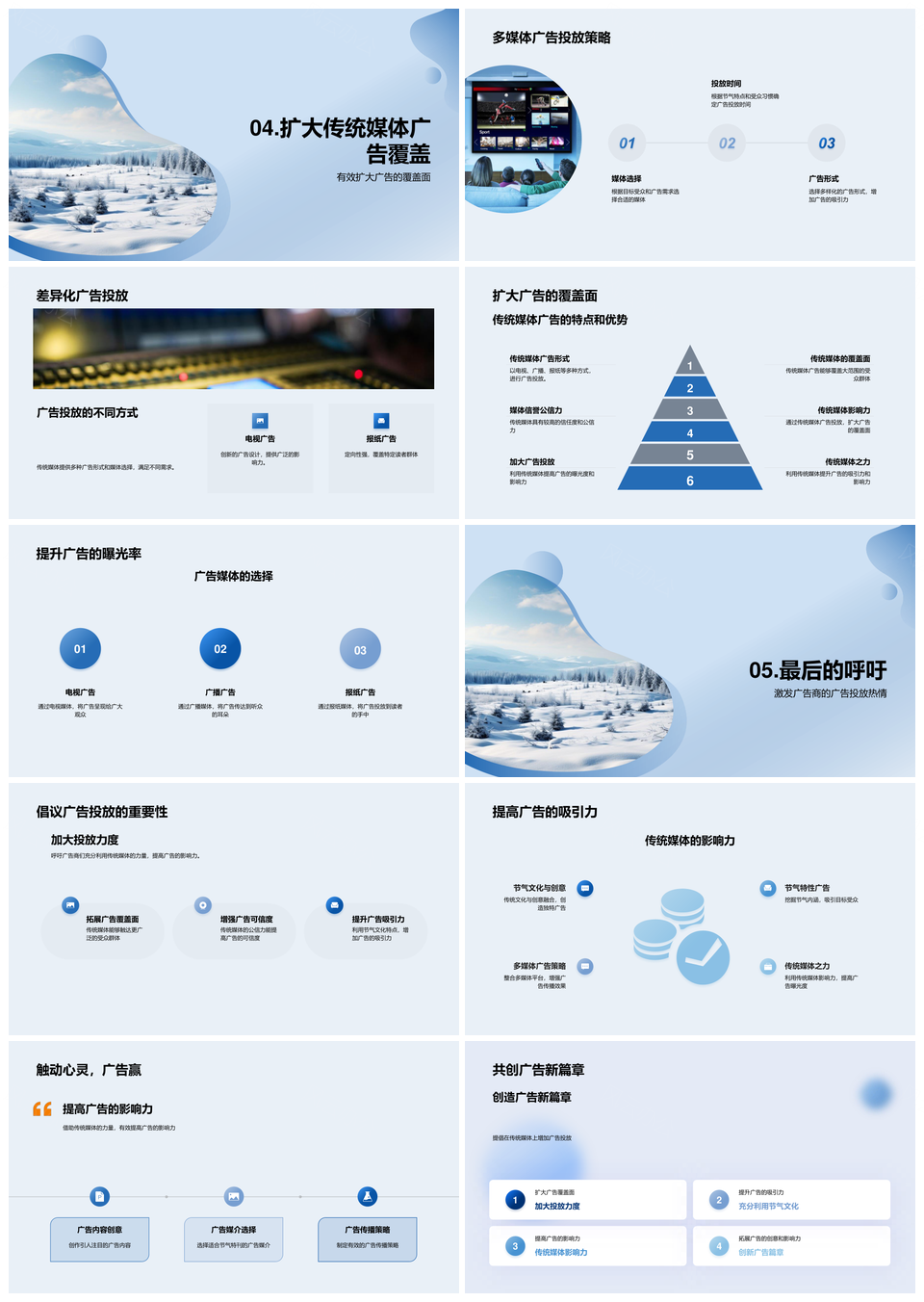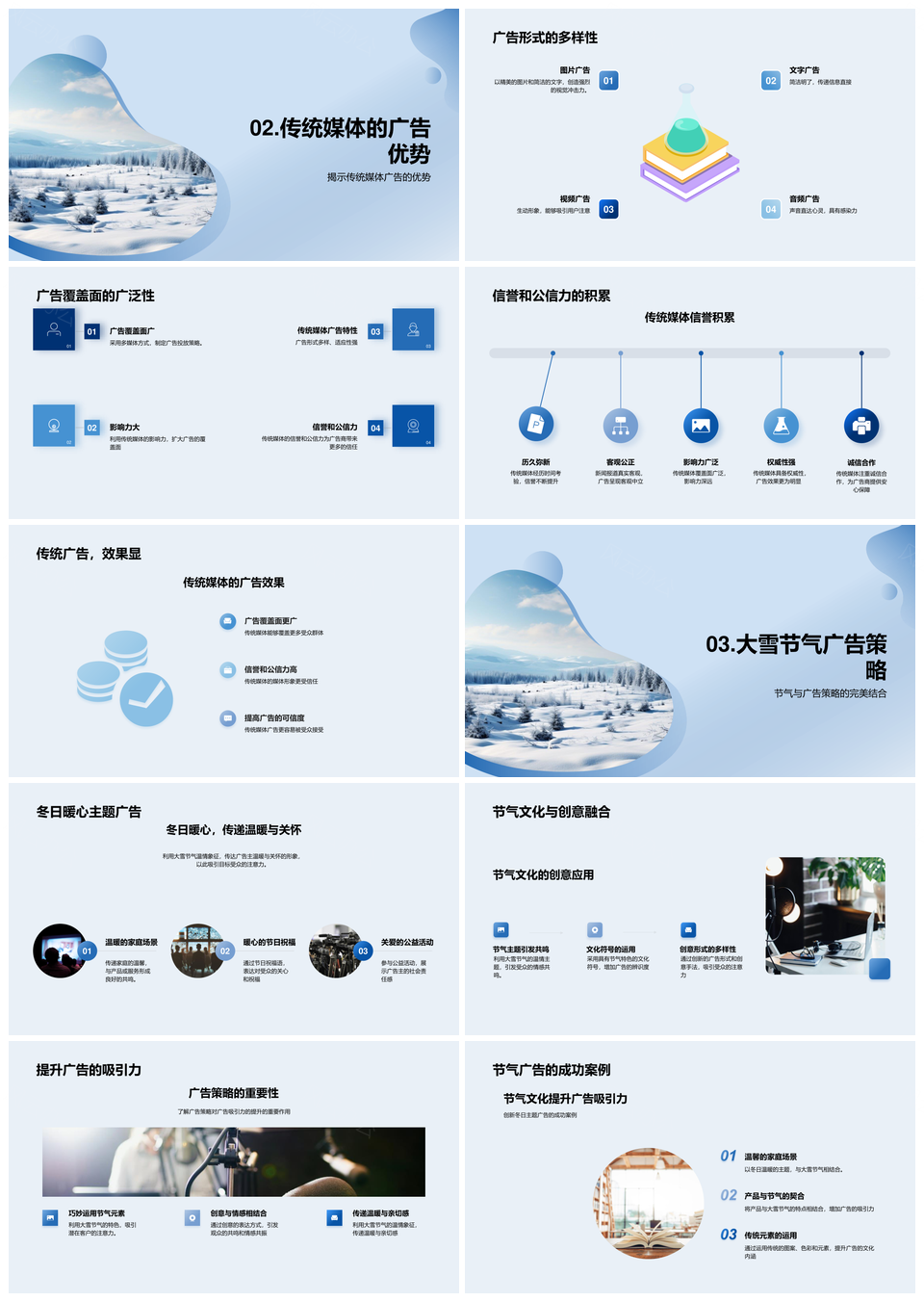 这是一张大雪节气传统媒体广告策略与雪花营销PPT模板,包含大雪节气、传统媒体、广告策略、雪花营销等主题内容,也可用作大雪节气传统媒体广告策略、传统媒体广告策略雪花营销、大雪节气广告策略、传统媒体雪花营销、广告策略雪花营销、大雪节气雪花营销、大雪雪花营销、传统媒体广告策略、雪花营销、大雪节气、节气广告策略、雪花广告策略、大雪传统媒体、大雪广告策略、节气雪花营销等PPT场景使用。