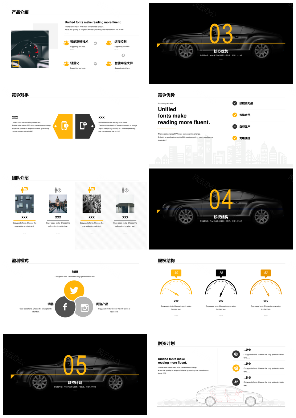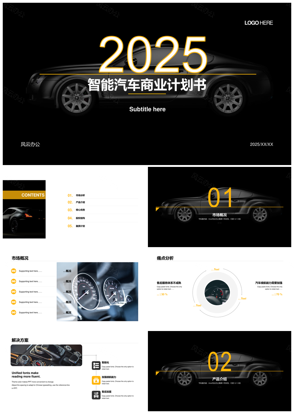风云办公提供的2025智能汽车商业计划高端简约PPT模板,下载格式为pptx,一共18页,作品中文字及图均可以修改和编辑,图片更改请在作品中右键图片并更换,文字修改请直接点击文字进行修改。