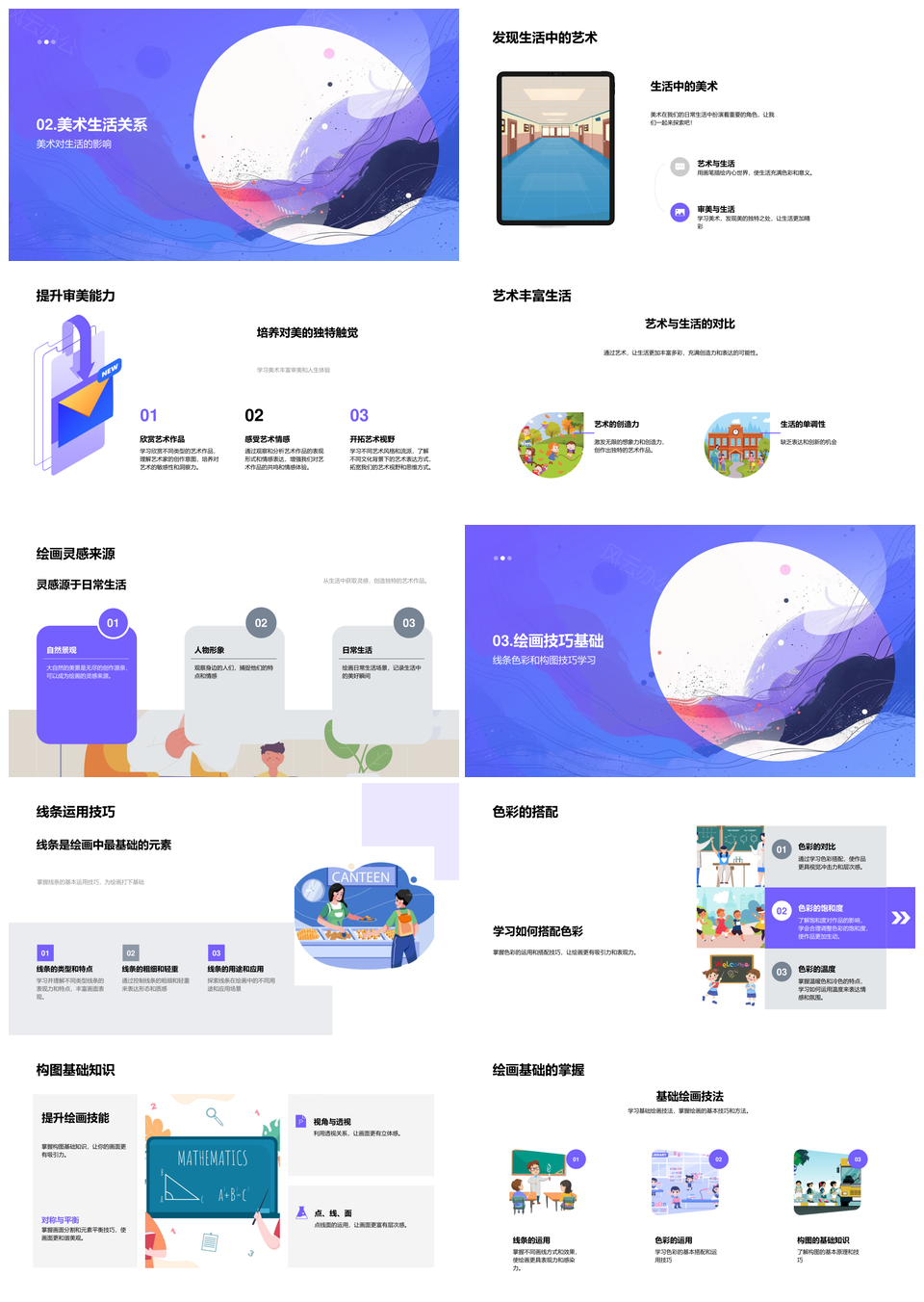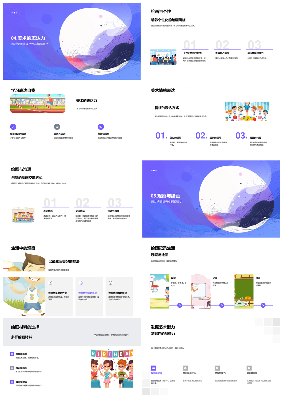2025美术乐趣基础教学绘画线条色彩观察表达PPT模板推荐