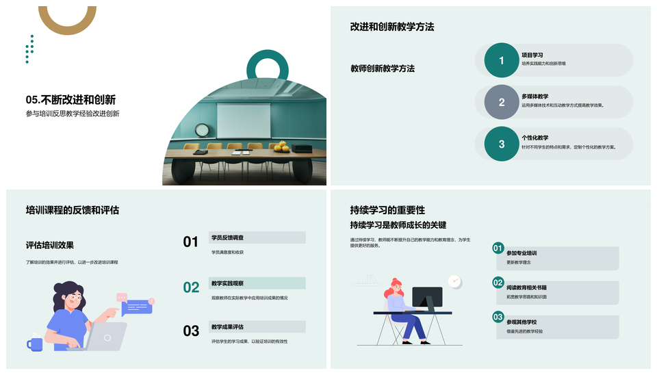 风云办公提供的教师教学能力与专业素养提升培训PPT模板,下载格式为pptx,一共22页,作品中文字及图均可以修改和编辑,图片更改请在作品中右键图片并更换,文字修改请直接点击文字进行修改。