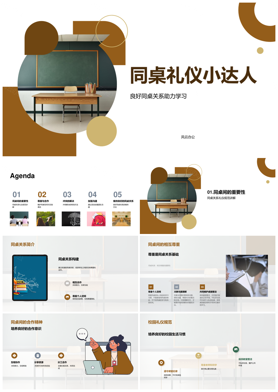风云办公提供的同桌礼仪尊重合作校园规范化解矛盾PPT模板,下载格式为pptx,一共33页,作品中文字及图均可以修改和编辑,图片更改请在作品中右键图片并更换,文字修改请直接点击文字进行修改。