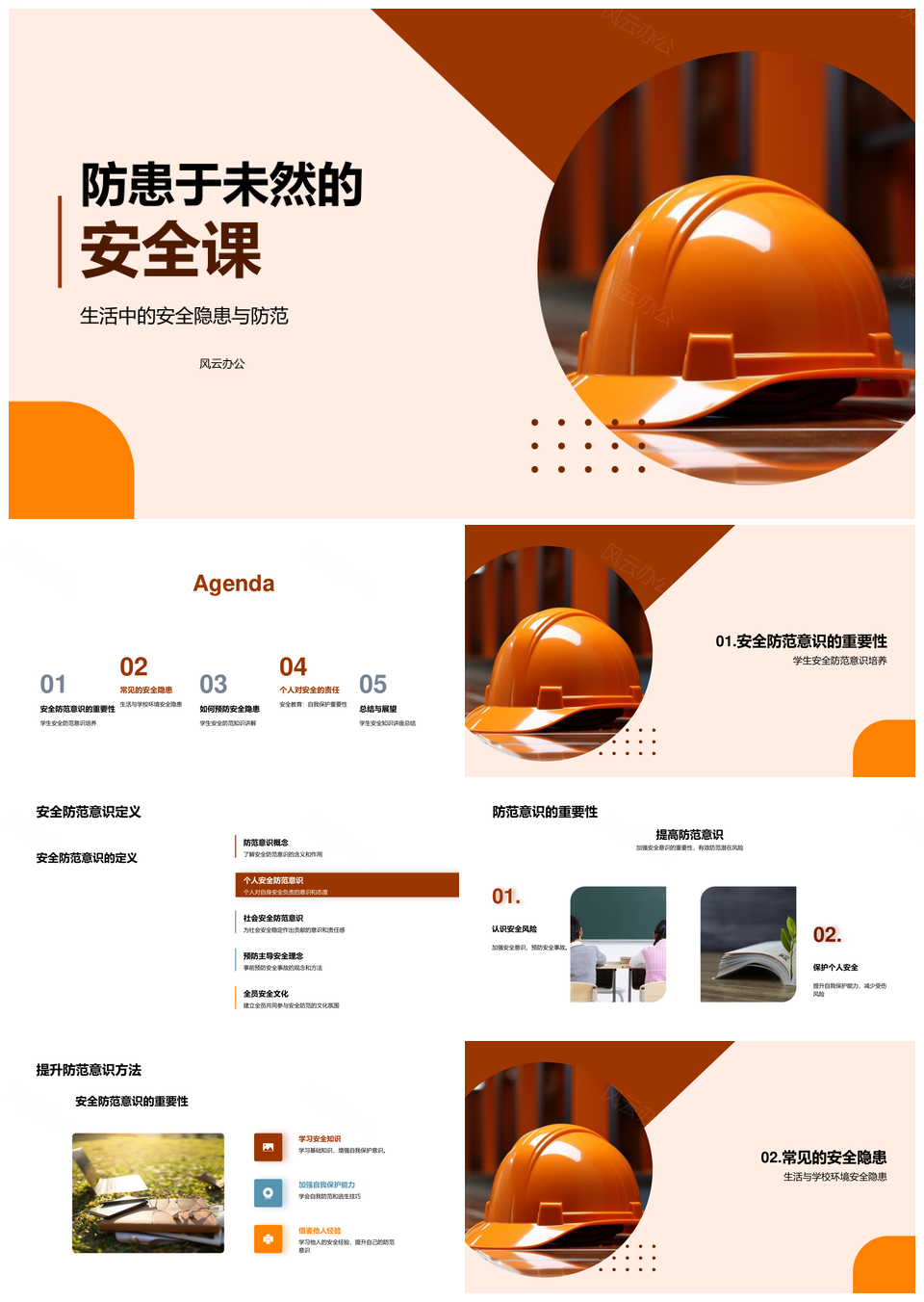 风云办公提供的安全课提升意识防患生活学校隐患PPT模板,下载格式为pptx,一共23页,作品中文字及图均可以修改和编辑,图片更改请在作品中右键图片并更换,文字修改请直接点击文字进行修改。