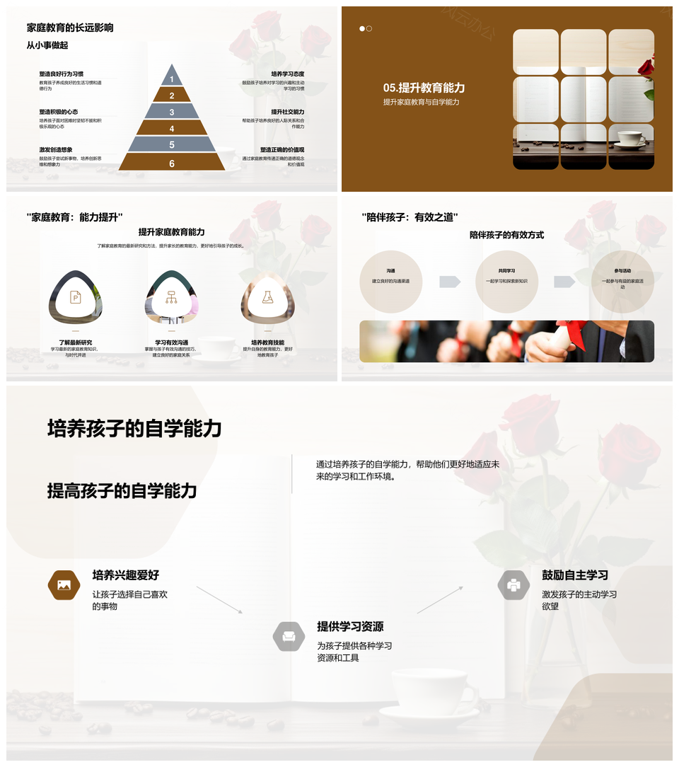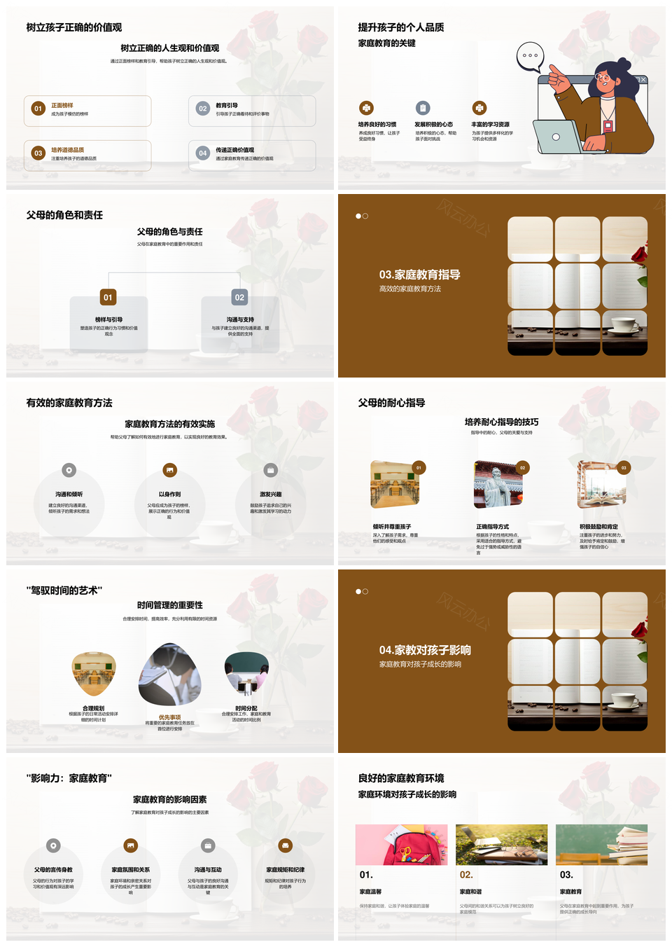 家庭教育父母角色价值观品质时间自学策略PPT模板推荐