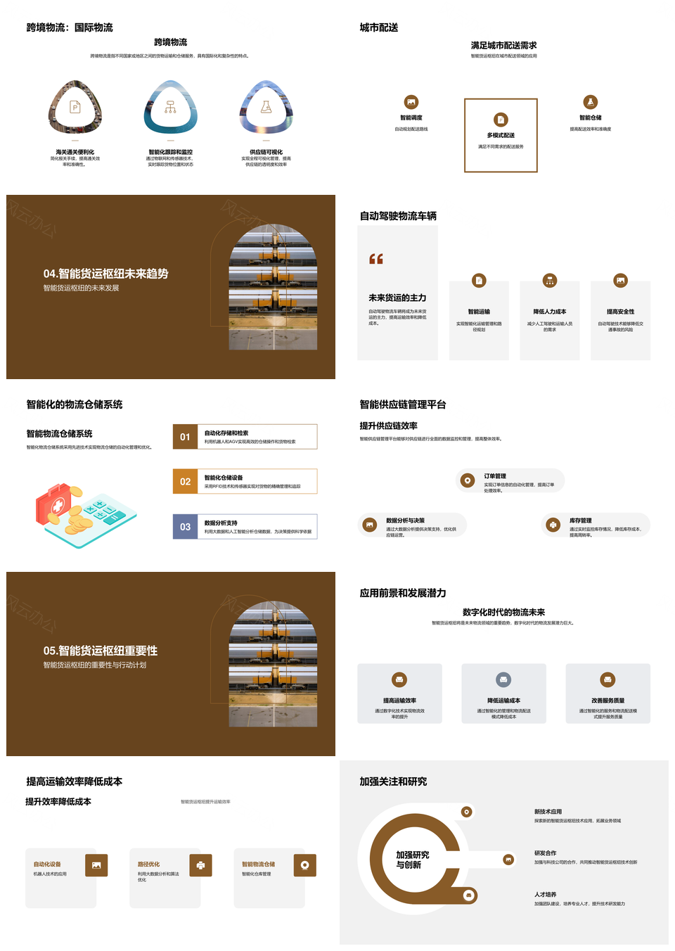 风云办公提供的智能货运枢纽定义未来运输趋势PPT模板,下载格式为pptx,一共31页,作品中文字及图均可以修改和编辑,图片更改请在作品中右键图片并更换,文字修改请直接点击文字进行修改。