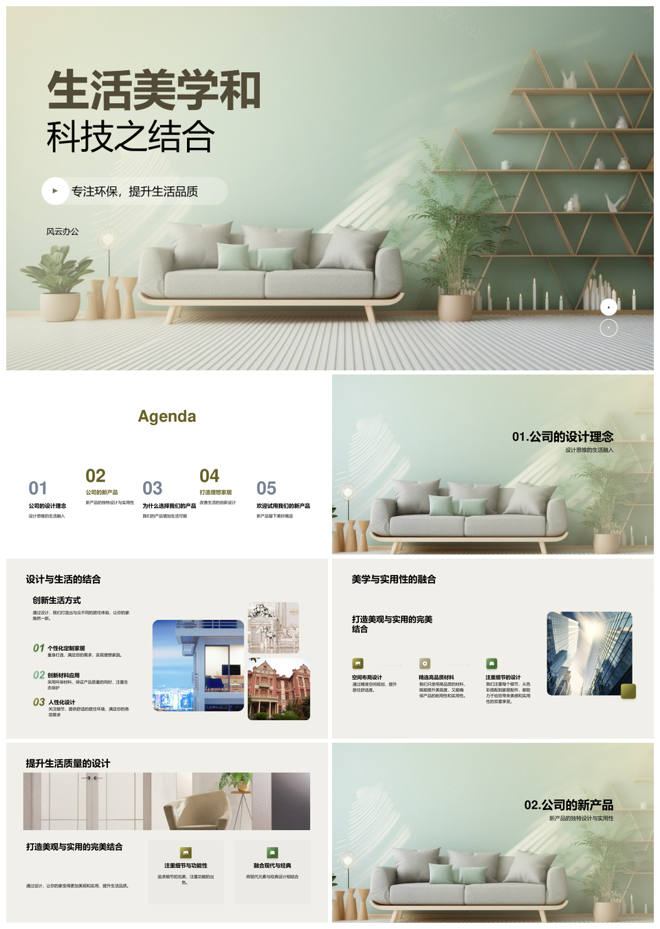 生活美学智能科技环保设计提升品质PPT模板推荐