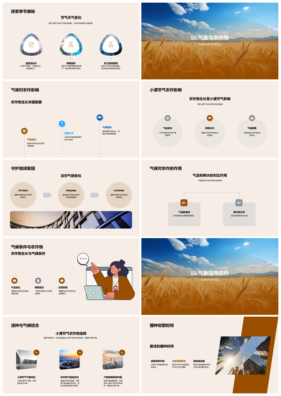 这是一张小满节气气候与农事管理PPT模板,包含小满、节气、气候、农事、管理等主题内容,也可用作小满节气气候农事管理、小满节气气候农事、节气气候农事管理、小满节气气候、节气气候农事、气候农事管理、小满农事管理、节气农事管理、小满节气农事、小满节气、节气气候、气候农事、农事管理、小满气候、小满农事等PPT场景使用。 风云办公提供的小满节气气候与农事管理PPT模板,下载格式为pptx,一共33页,作品中文字及图均可以修改和编辑,图片更改请在作品中右键图片并更换,文字修改请直接点击文字进行修改。