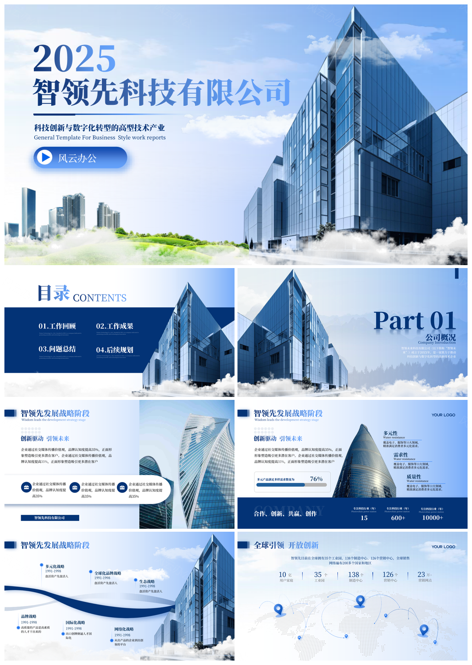 风云办公提供的2025蓝色商务企业工作汇报PPT模板,下载格式为pptx,一共20页,作品中文字及图均可以修改和编辑,图片更改请在作品中右键图片并更换,文字修改请直接点击文字进行修改。