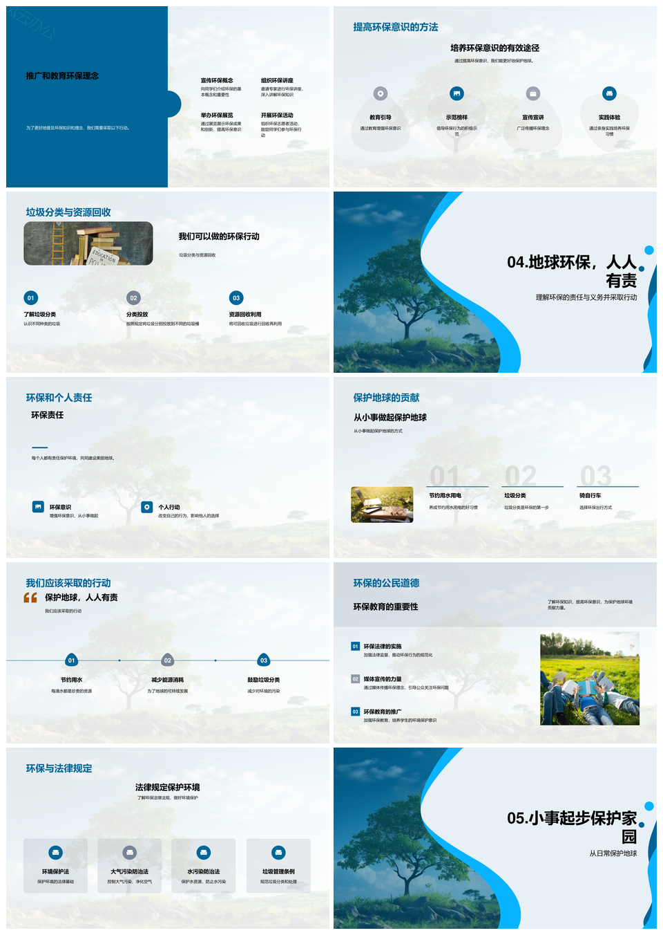 风云办公提供的环保教育垃圾分类行动共建绿色家园PPT模板,下载格式为pptx,一共33页,作品中文字及图均可以修改和编辑,图片更改请在作品中右键图片并更换,文字修改请直接点击文字进行修改。