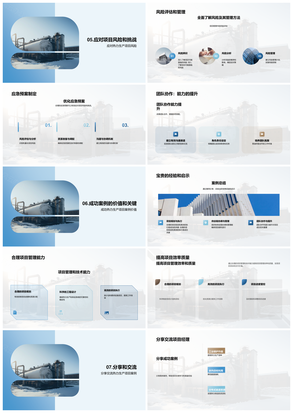 风云办公提供的热力工程项目管理成功案例与技案研讨PPT模板,下载格式为pptx,一共32页,作品中文字及图均可以修改和编辑,图片更改请在作品中右键图片并更换,文字修改请直接点击文字进行修改。