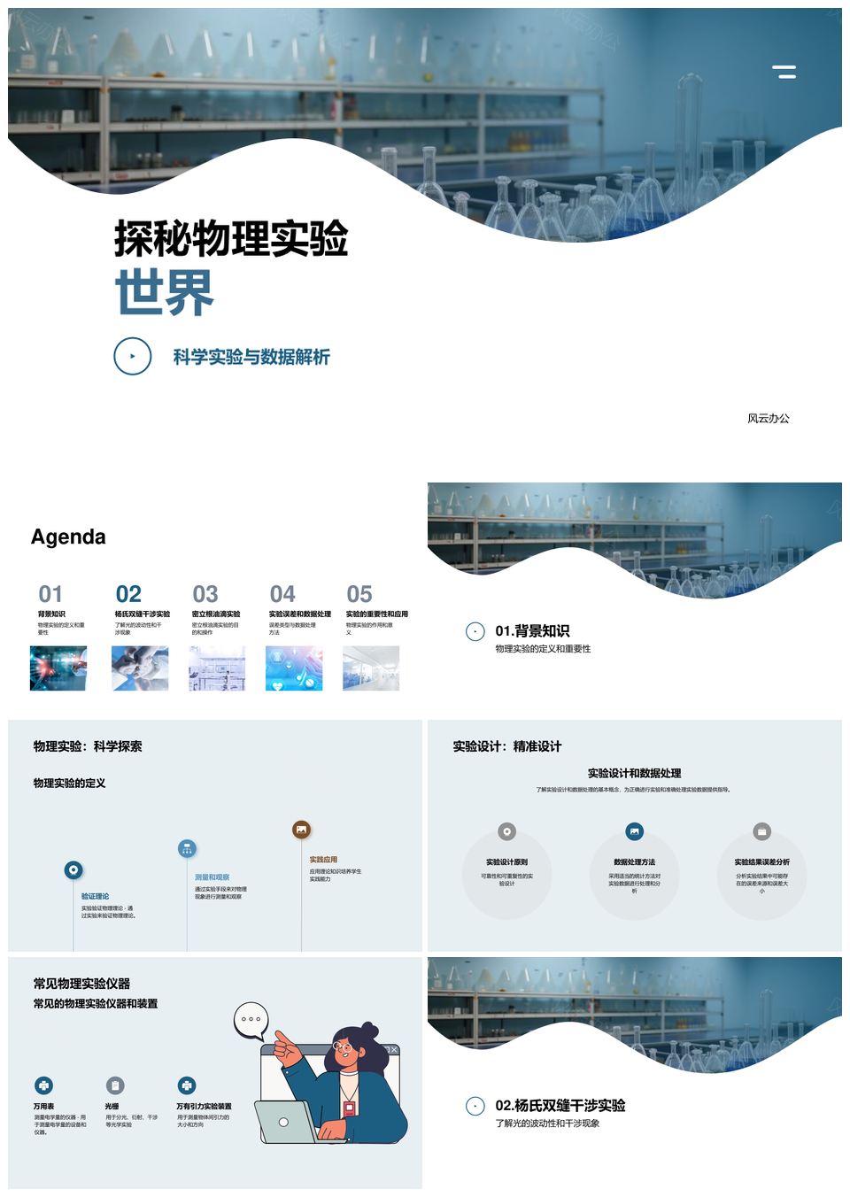 风云办公提供的物理实验设计仪器原理与数据处理探析PPT模板,下载格式为pptx,一共25页,作品中文字及图均可以修改和编辑,图片更改请在作品中右键图片并更换,文字修改请直接点击文字进行修改。