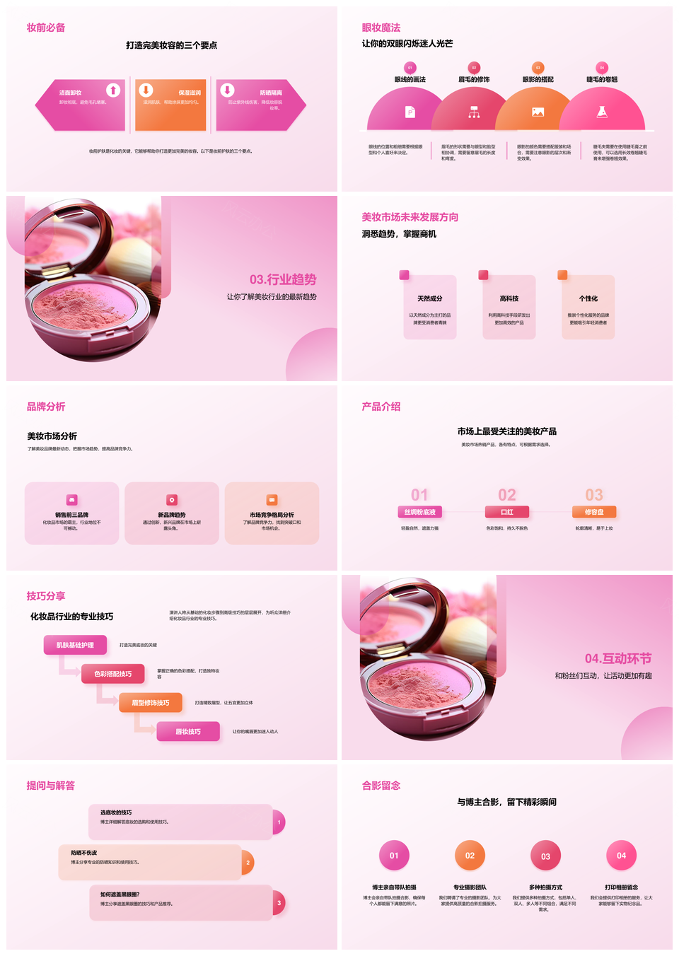 风云办公提供的粉色商务现代美妆化妆培训课件,下载格式为pptx,一共23页,作品中文字及图均可以修改和编辑,图片更改请在作品中右键图片并更换,文字修改请直接点击文字进行修改。