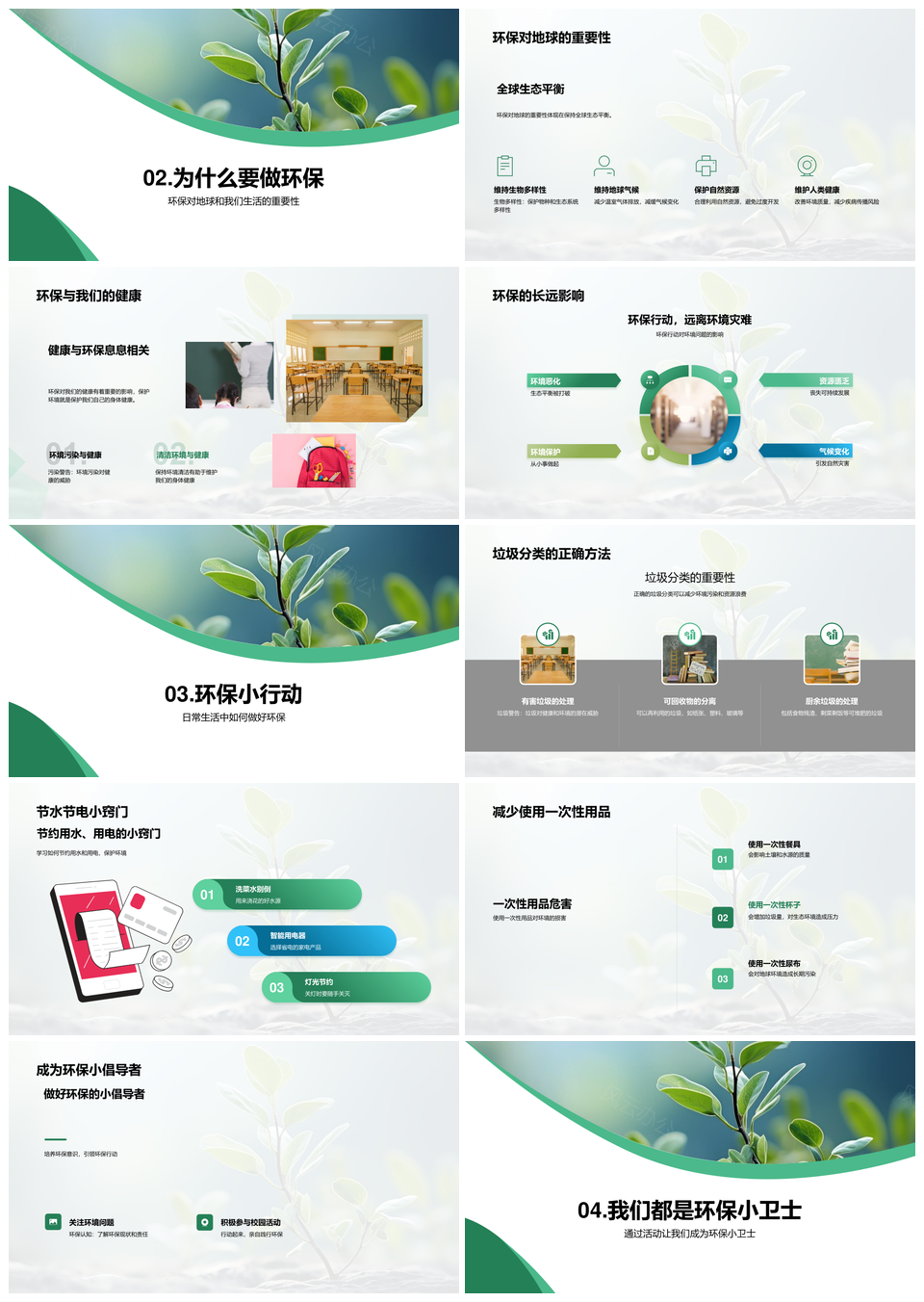这是一张绿色少年践行环保垃圾分类节水节电行动PPT模板,包含绿色少年、践行、环保、垃圾、分类、节水、节电、行动等主题内容,也可用作绿色少年践行环保垃圾分类、环保垃圾分类节水节电行动、绿色少年践行环保、垃圾分类节水节电行动、少年践行环保垃圾分类、环保节水节电行动、绿色少年环保行动、践行环保垃圾分类节水、垃圾分类节水节电、节水节电行动、环保垃圾分类节水、绿色少年践行、少年践行环保、节水节电、绿色环保等PPT场景使用。 风云办公提供的绿色少年践行环保垃圾分类节水节电行动PPT模板,下载格式为pptx,一共25页,作品中文字及图均可以修改和编辑,图片更改请在作品中右键图片并更换,文字修改请直接点击文字进行修改。
