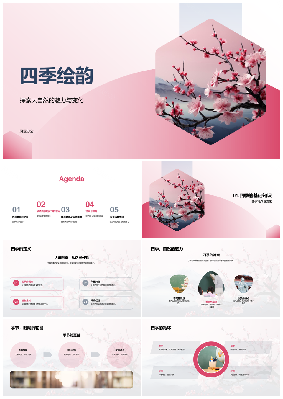 风云办公提供的四季绘韵樱树映现四时变幻PPT模板,下载格式为pptx,一共33页,作品中文字及图均可以修改和编辑,图片更改请在作品中右键图片并更换,文字修改请直接点击文字进行修改。