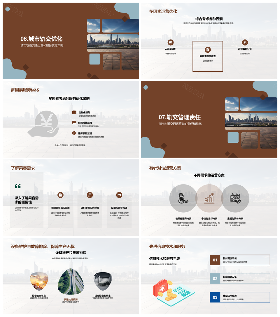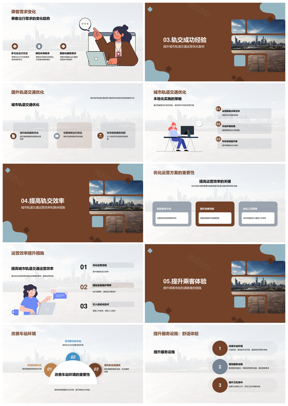 风云办公提供的城市轨交进化服务优化提升出行满意度PPT模板,下载格式为pptx,一共26页,作品中文字及图均可以修改和编辑,图片更改请在作品中右键图片并更换,文字修改请直接点击文字进行修改。