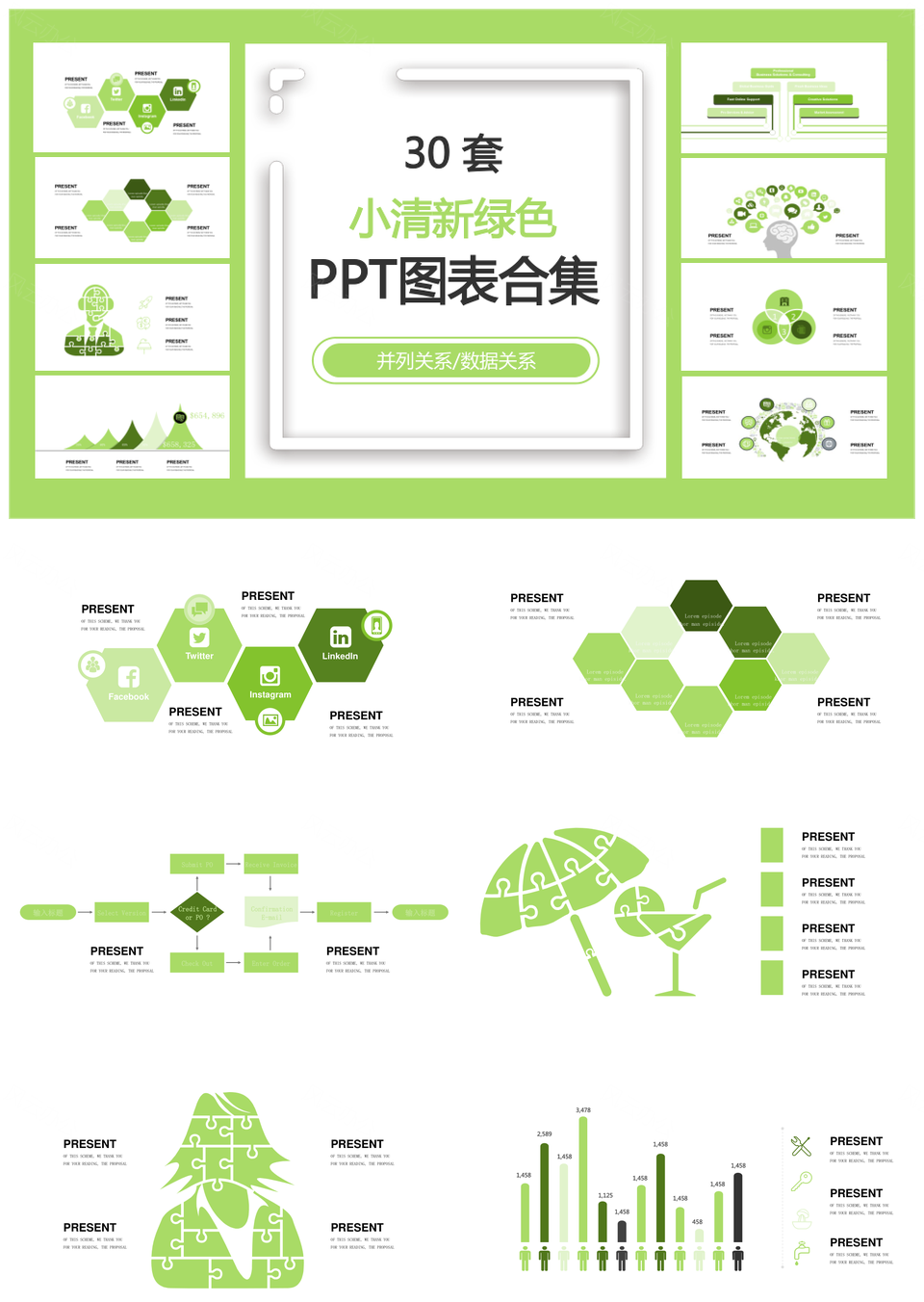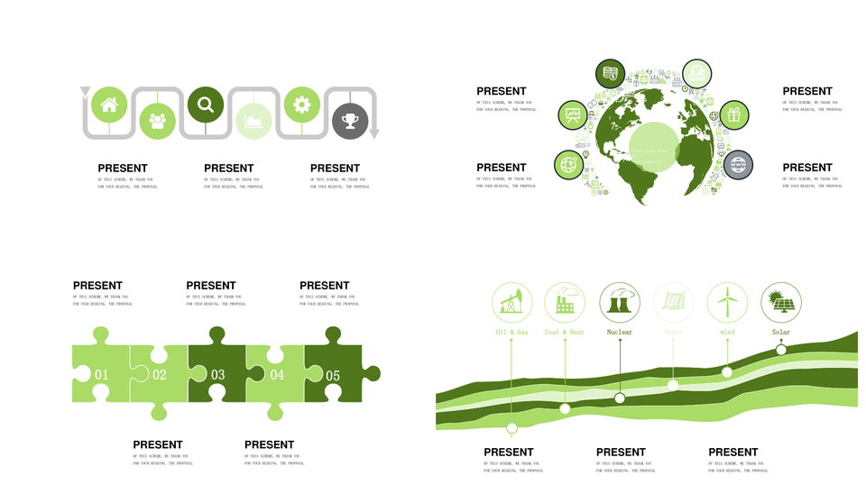 风云办公提供的小清新绿色并列关系数据关系PPT图表合集,下载格式为pptx,一共31页,作品中文字及图均可以修改和编辑,图片更改请在作品中右键图片并更换,文字修改请直接点击文字进行修改。