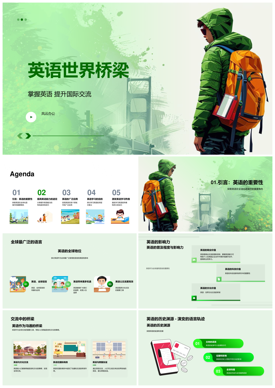 英语世界桥梁掌握英语能力提升国际交流工具资源PPT模板推荐