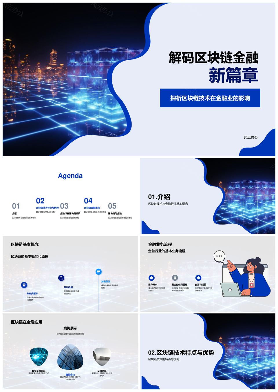 风云办公提供的区块链技术解析金融行业信息存储处理PPT模板,下载格式为pptx,一共25页,作品中文字及图均可以修改和编辑,图片更改请在作品中右键图片并更换,文字修改请直接点击文字进行修改。