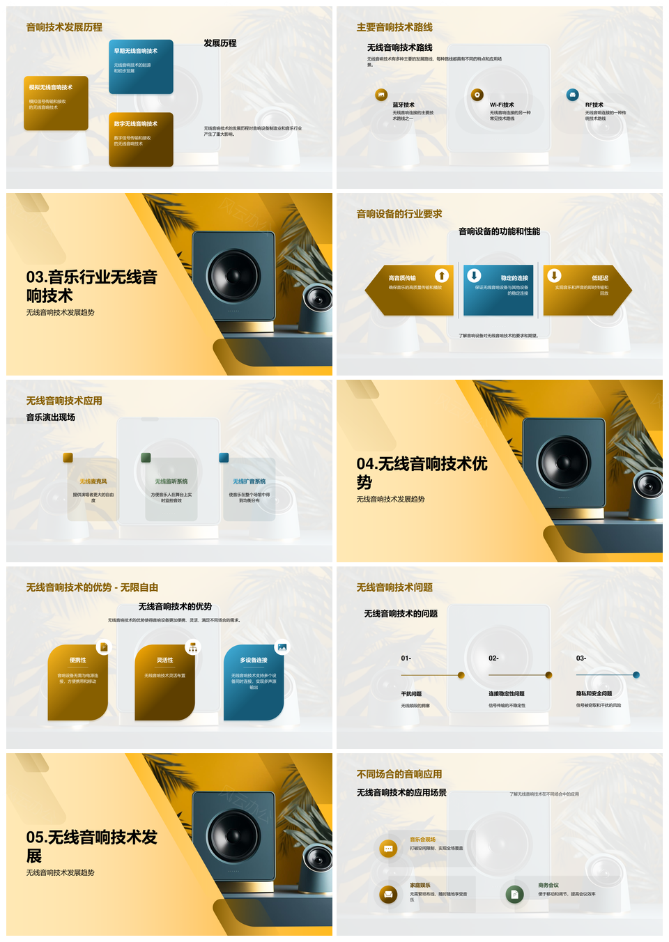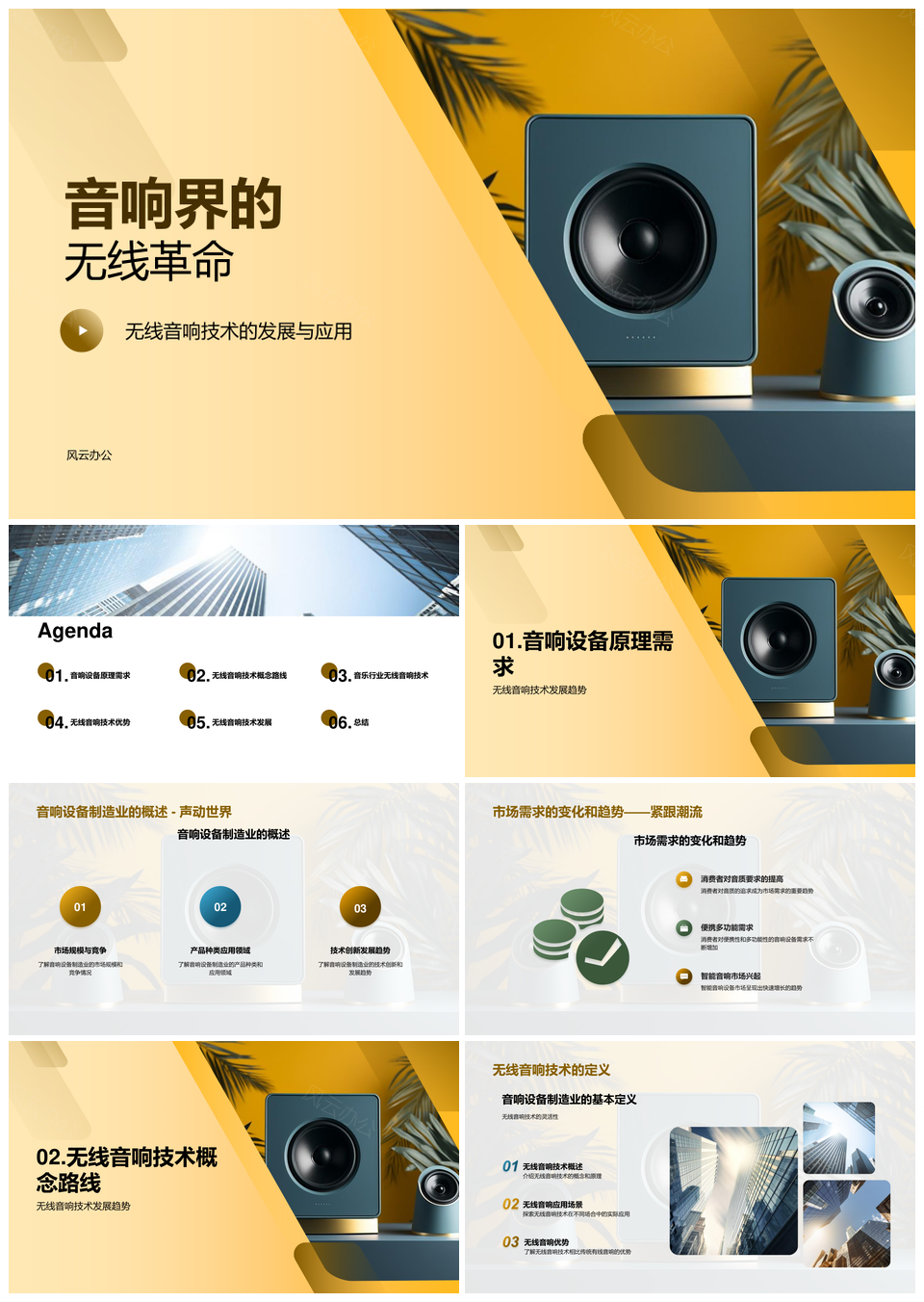 风云办公提供的无线音响技术发展趋势与设备制造业PPT模板,下载格式为pptx,一共24页,作品中文字及图均可以修改和编辑,图片更改请在作品中右键图片并更换,文字修改请直接点击文字进行修改。