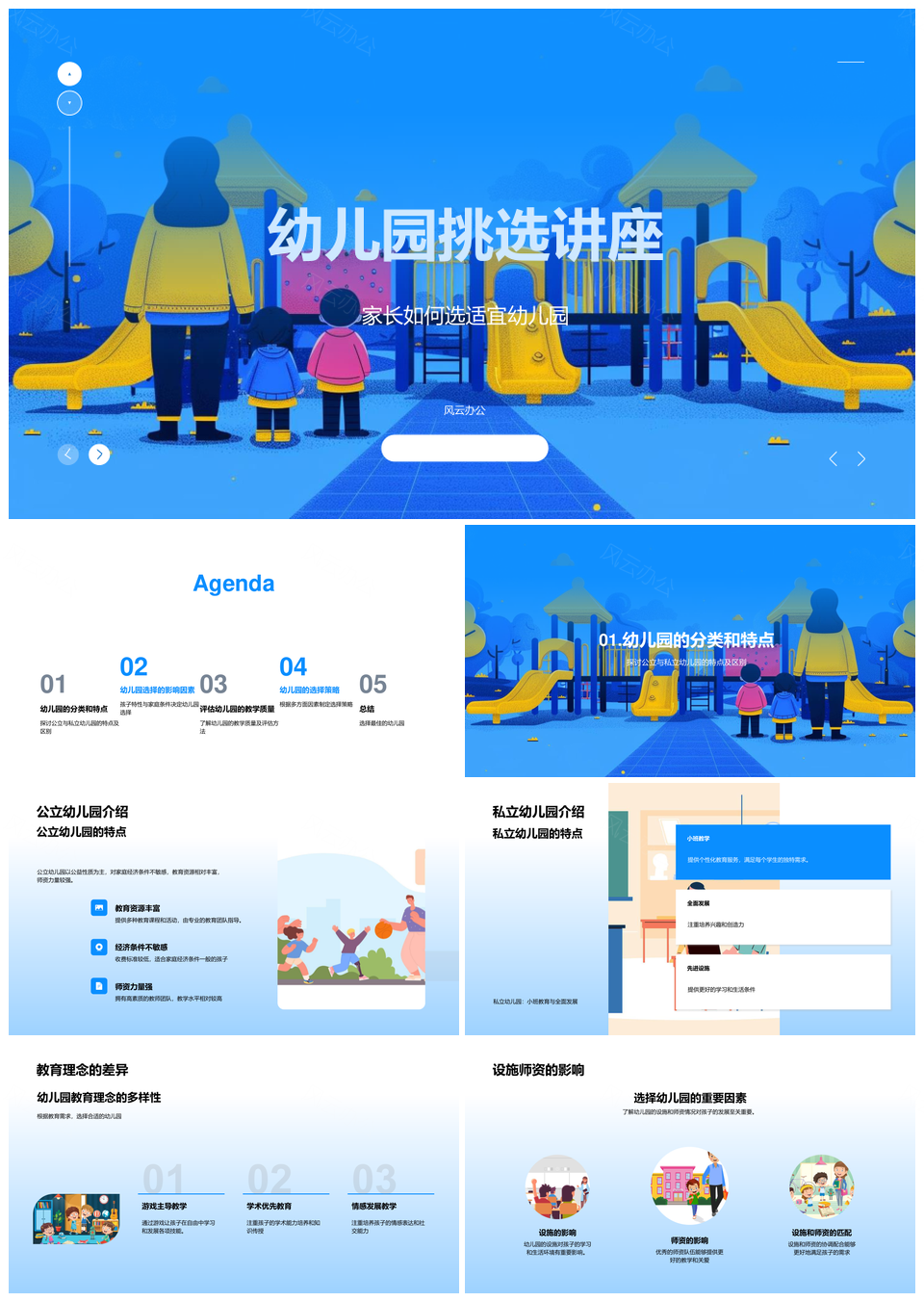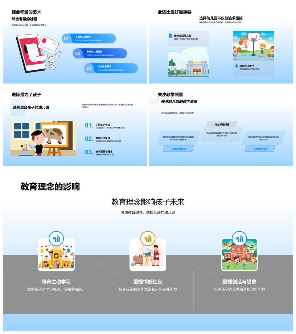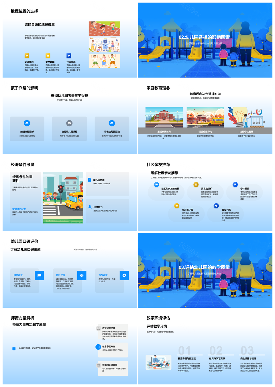 公立私立幼儿园挑选指南教育理念师资家庭孩子PPT模板推荐