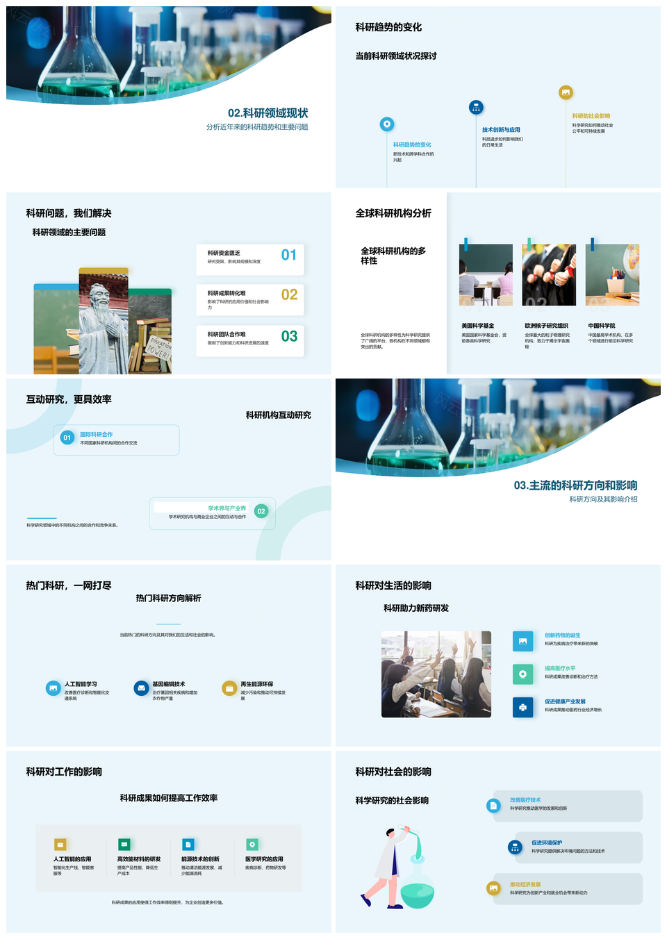 科研领域进展方法伦理趋势显微研究方向PPT模板推荐