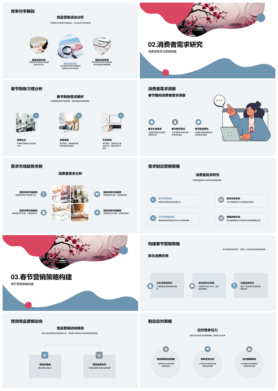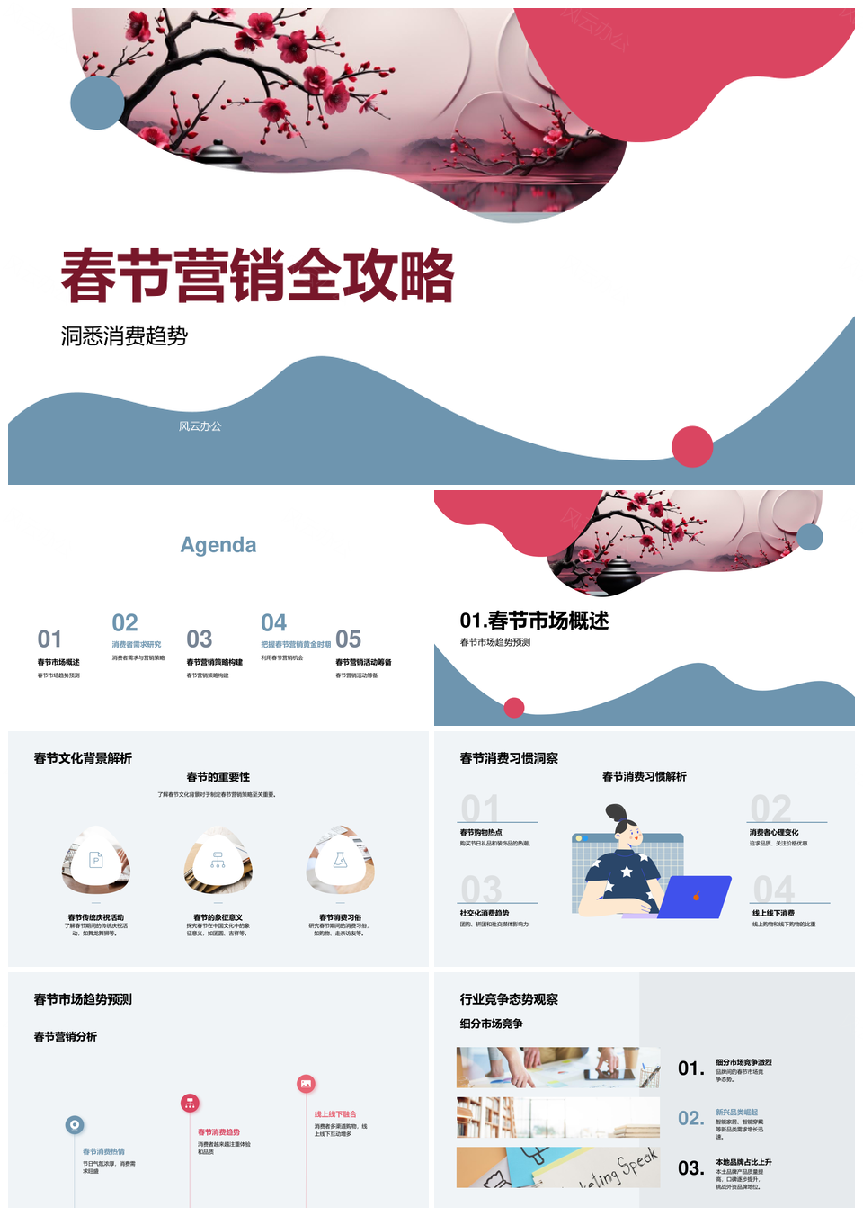 风云办公提供的春节消费趋势营销策略竞品效果全攻略PPT模板,下载格式为pptx,一共27页,作品中文字及图均可以修改和编辑,图片更改请在作品中右键图片并更换,文字修改请直接点击文字进行修改。