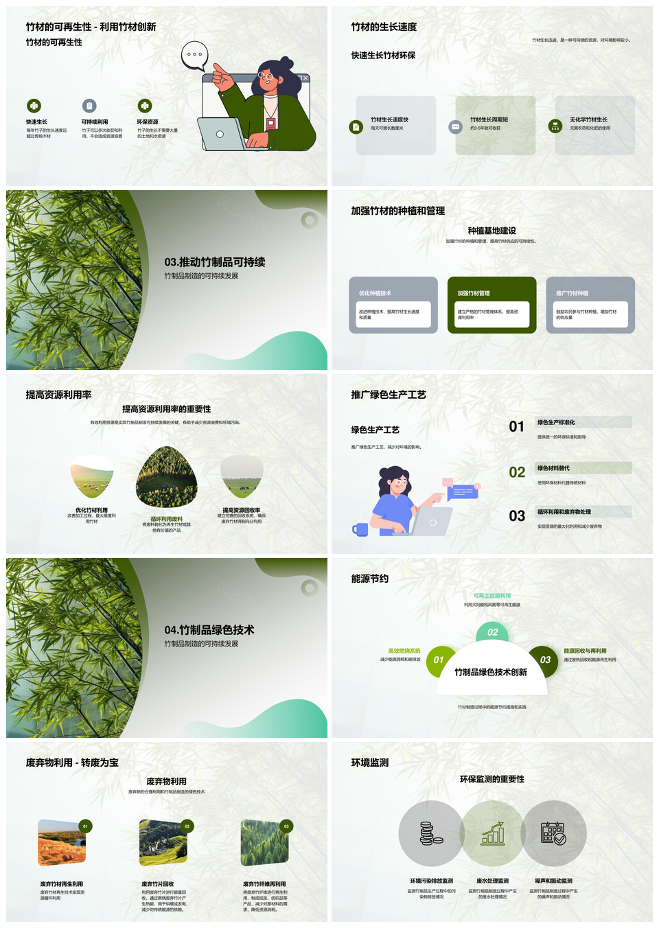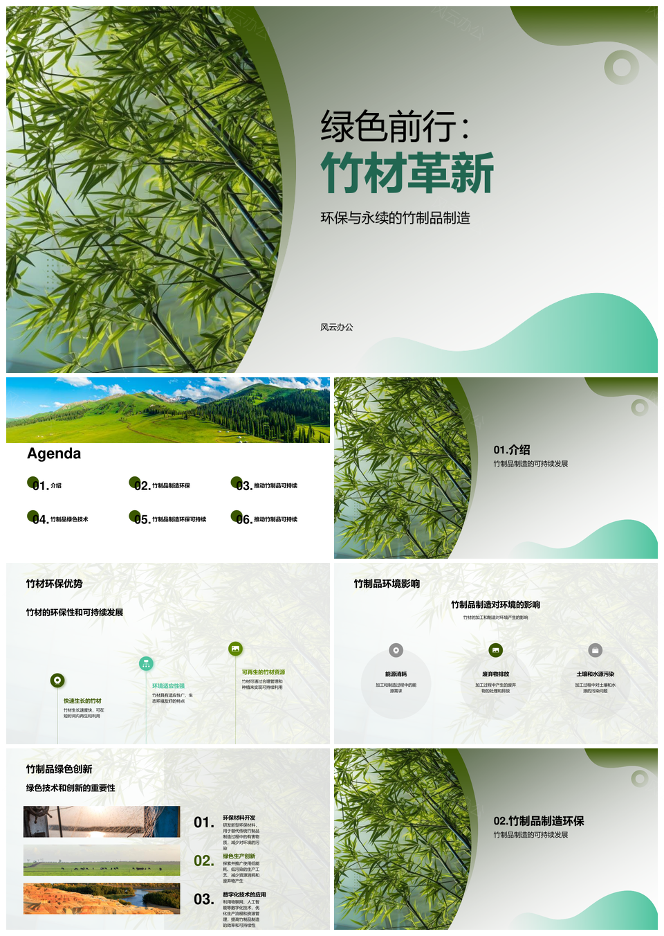 风云办公提供的竹材绿色创新驱动可持续发展PPT模板,下载格式为pptx,一共29页,作品中文字及图均可以修改和编辑,图片更改请在作品中右键图片并更换,文字修改请直接点击文字进行修改。