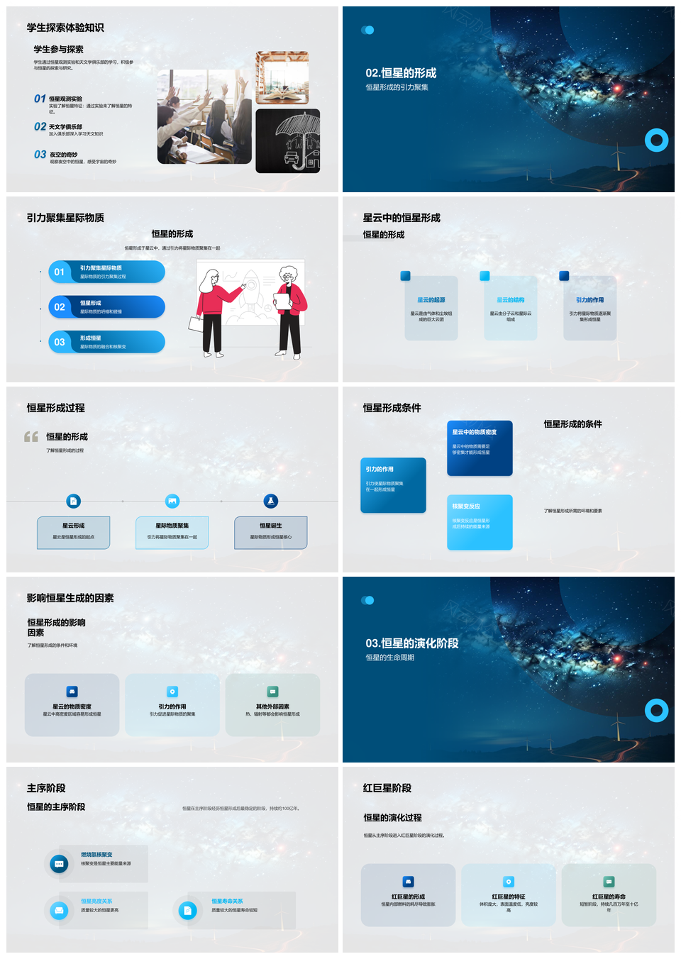 宇宙恒星形成演化类型星云引力主序阶段PPT模板