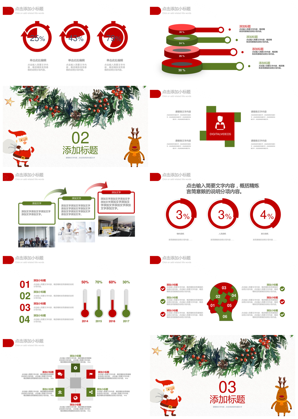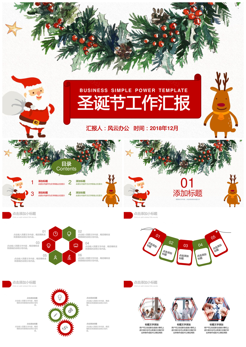 这是一张圣诞节工作汇报PPT模板,包含圣诞节、工作、汇报等主题内容,也可用作圣诞节工作汇报、圣诞节工作、圣诞节汇报、工作汇报等PPT场景使用。 风云办公提供的圣诞节工作汇报PPT模板,下载格式为pptx,一共29页,作品中文字及图均可以修改和编辑,图片更改请在作品中右键图片并更换,文字修改请直接点击文字进行修改。