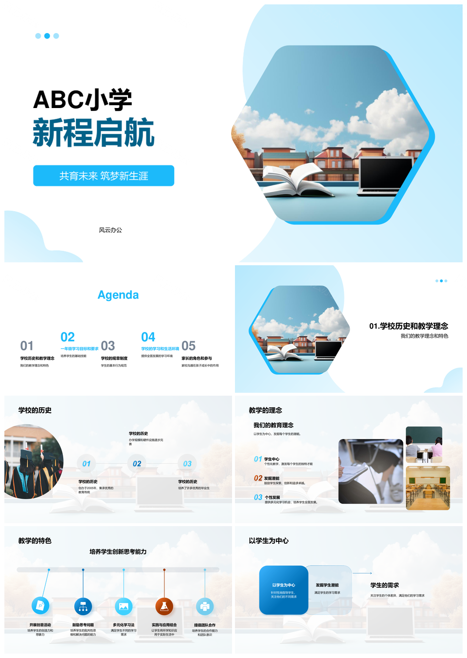 ABC小学教学理念特色规范家校共建学习环境PPT模板推荐