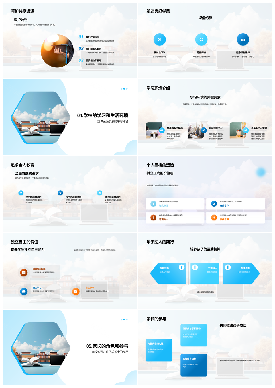 这是一张ABC小学教学理念特色规范家校共建学习环境PPT模板,包含ABC小学、教学理念、特色、规范、家校共建、学习环境等主题内容,也可用作ABC小学教学理念特色规范、ABC小学家校共建学习环境、ABC小学教学理念家校共建、教学理念特色规范家校共建、家校共建学习环境特色规范、ABC小学特色规范家校共建、教学理念特色家校共建学习、ABC小学教学理念特色、教学理念特色规范、家校共建学习环境、ABC小学家校共建、教学理念家校共建、特色规范家校共建、教学理念规范家校、规范家校共建学习等PPT场景使用。 风云办公提供的ABC小学教学理念特色规范家校共建学习环境PPT模板,下载格式为pptx,一共32页,作品中文字及图均可以修改和编辑,图片更改请在作品中右键图片并更换,文字修改请直接点击文字进行修改。