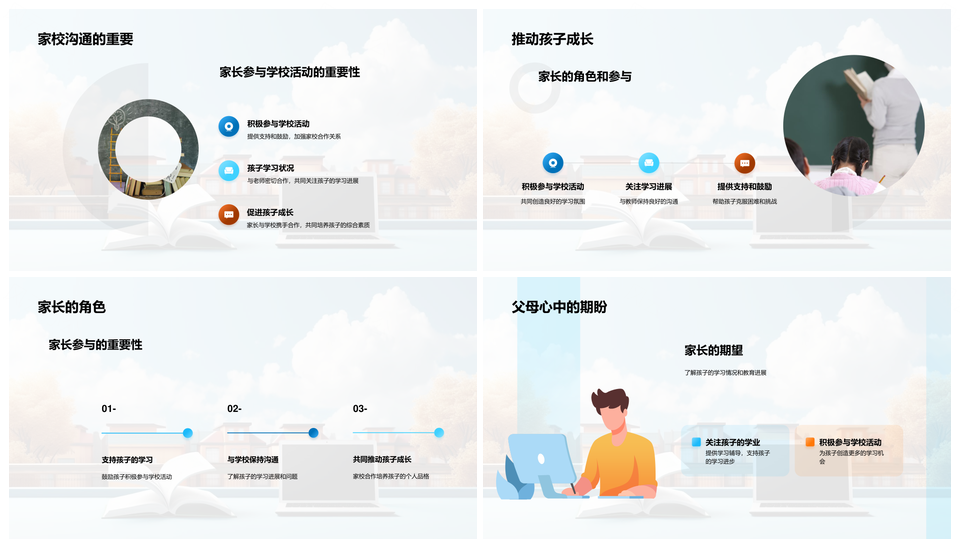 学期总结学术家校共建体艺佳绩成长展望PPT模板