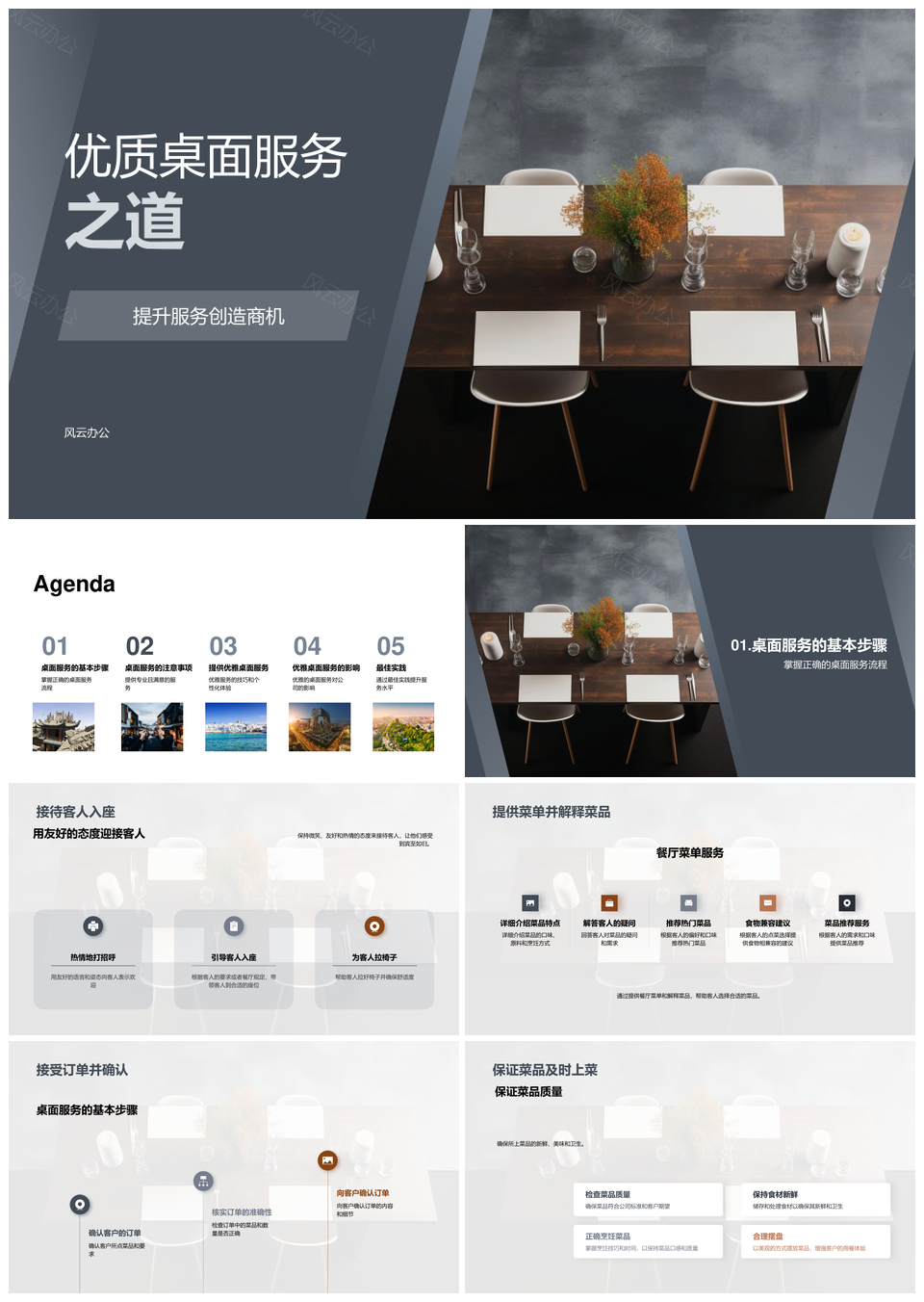 风云办公提供的优质桌面服务商务礼仪培训创餐饮商机PPT模板,下载格式为pptx,一共33页,作品中文字及图均可以修改和编辑,图片更改请在作品中右键图片并更换,文字修改请直接点击文字进行修改。