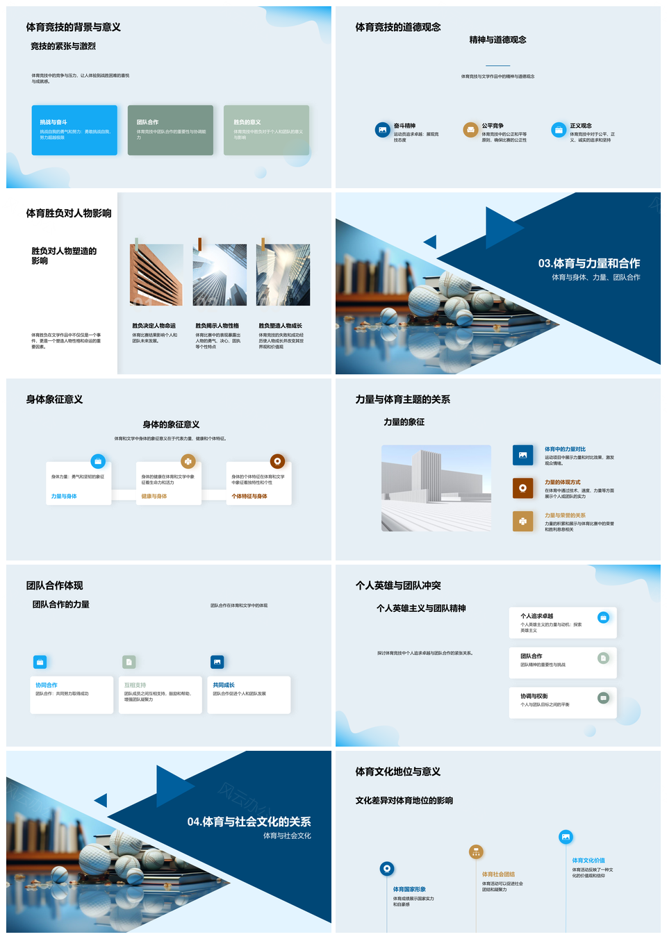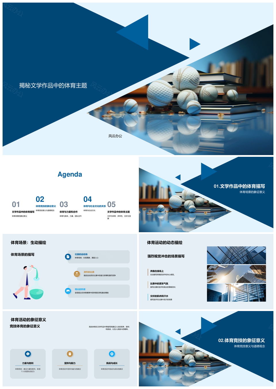 风云办公提供的文学竞技场辉映体育精神PPT模板,下载格式为pptx,一共24页,作品中文字及图均可以修改和编辑,图片更改请在作品中右键图片并更换,文字修改请直接点击文字进行修改。