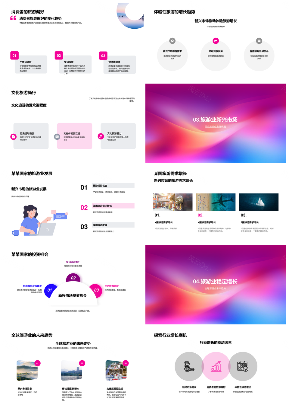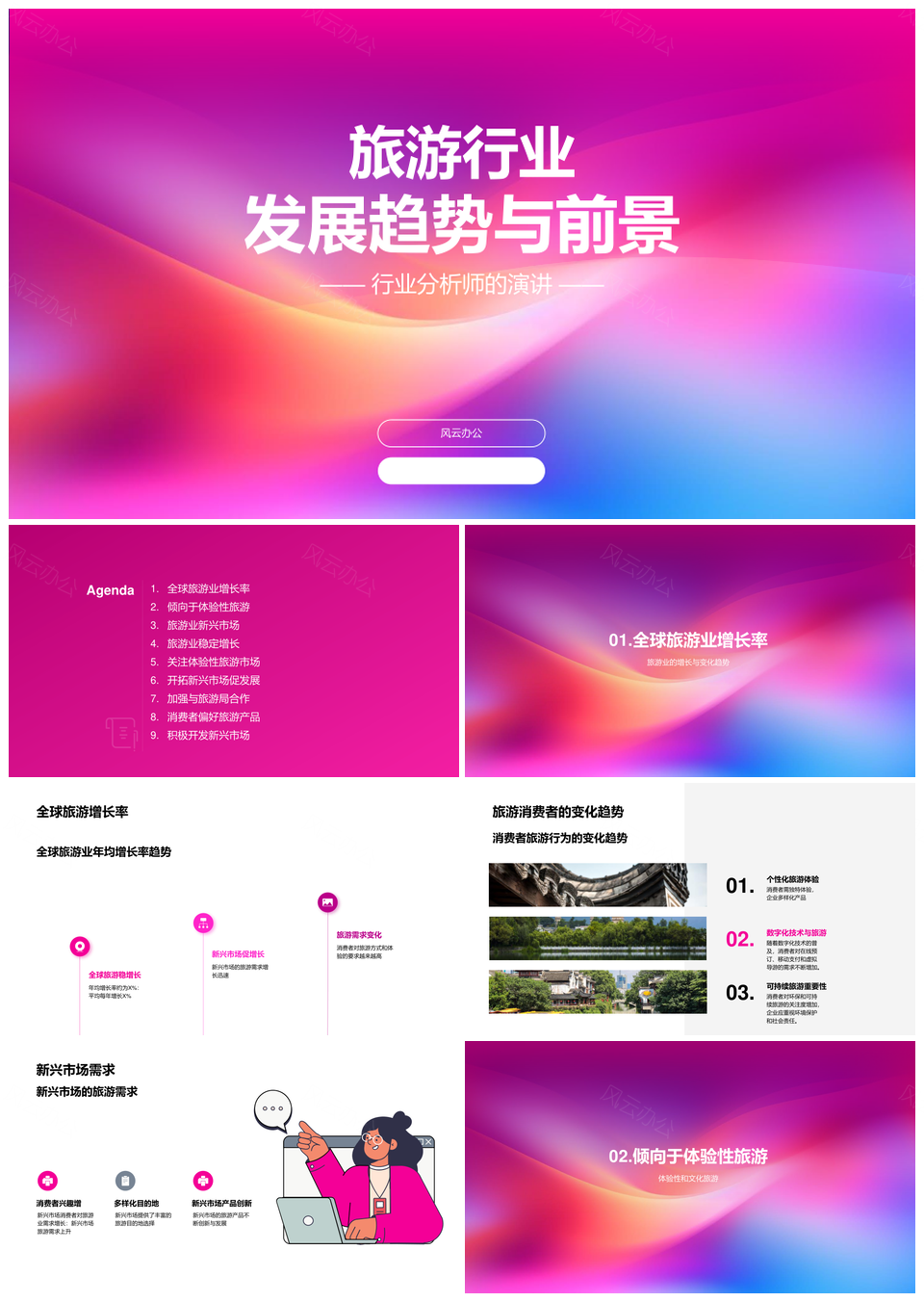 这是一张2025全球旅游业趋势前景行业分析师演讲消费渐变增长PPT模板,包含2025、全球、旅游业、趋势、前景、行业、分析师、演讲、消费、渐变、增长等主题内容,也可用作2025全球旅游业趋势、全球旅游业趋势前景、行业分析师演讲消费、分析师演讲消费渐变、消费渐变增长、旅游业趋势前景、行业分析师演讲、分析师演讲消费、演讲消费渐变、趋势前景行业、2025全球消费渐变、全球消费渐变增长、趋势前景增长、行业分析师消费、消费增长趋势等PPT场景使用。 风云办公提供的2025全球旅游业趋势前景行业分析师演讲消费渐变增长PPT模板,下载格式为pptx,一共39页,作品中文字及图均可以修改和编辑,图片更改请在作品中右键图片并更换,文字修改请直接点击文字进行修改。