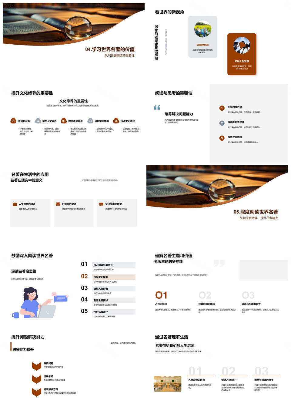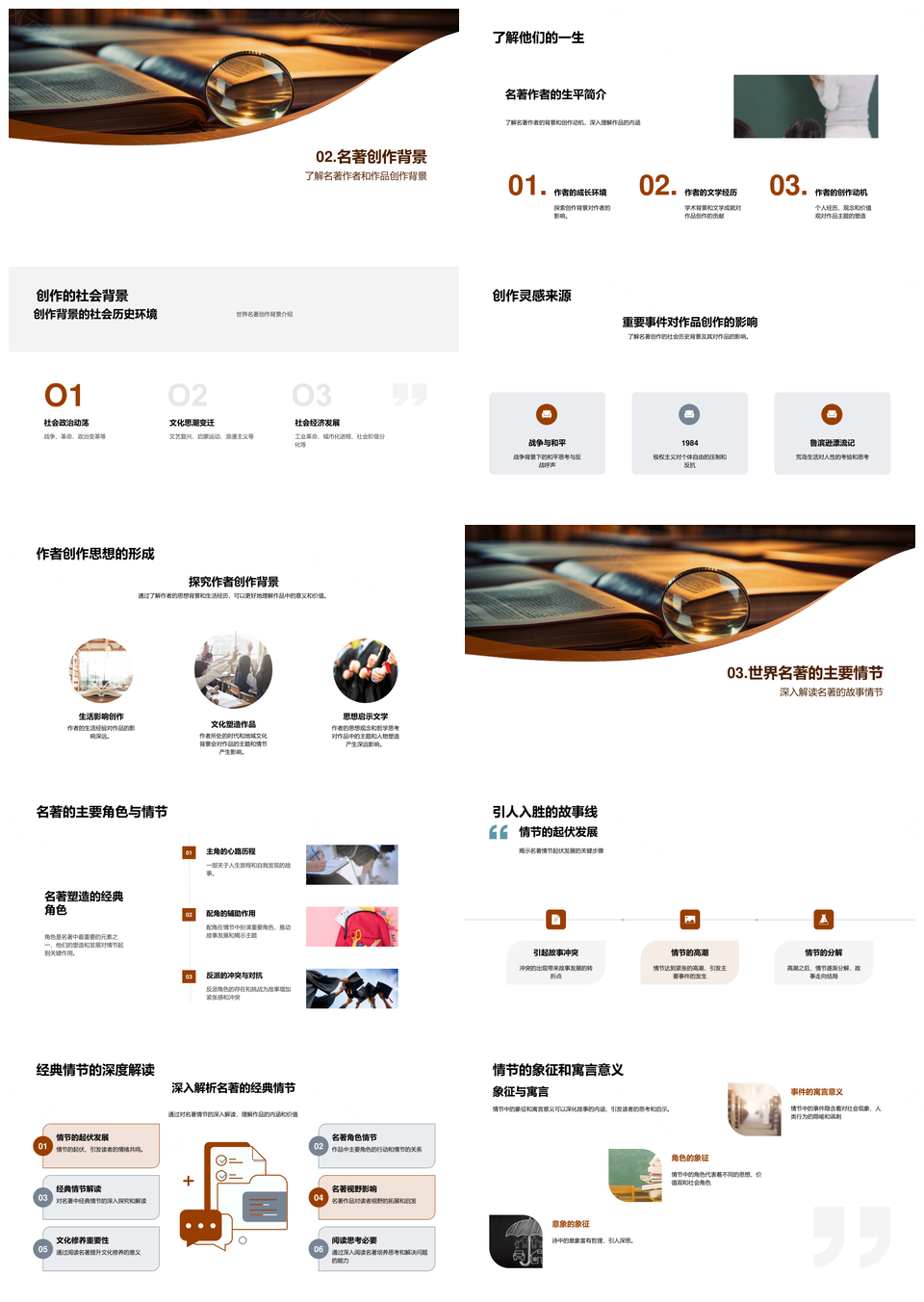 风云办公提供的高中名著探索解析经典品读人生视野PPT模板,下载格式为pptx,一共28页,作品中文字及图均可以修改和编辑,图片更改请在作品中右键图片并更换,文字修改请直接点击文字进行修改。