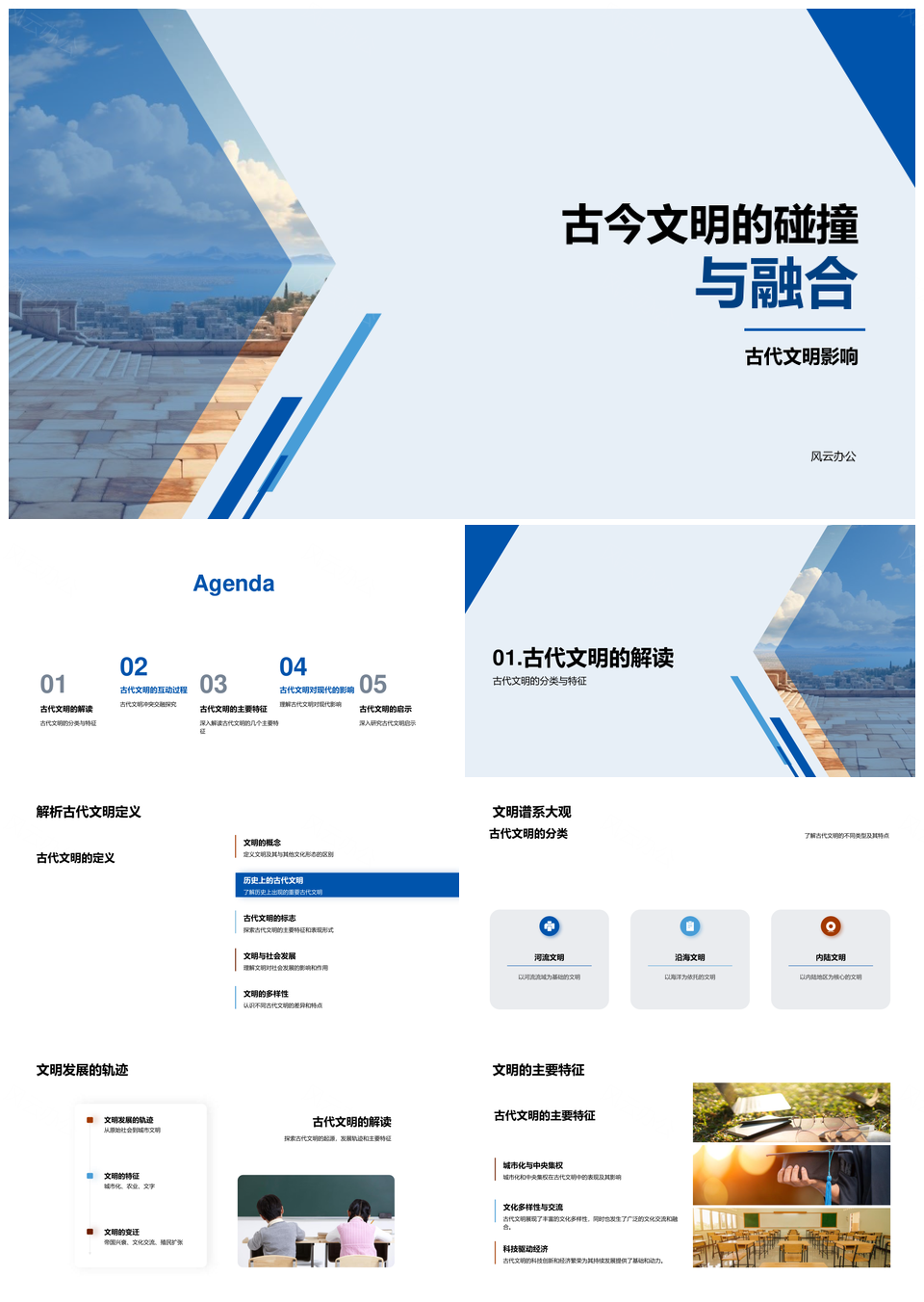 风云办公提供的古今文明碰撞交融启示影响特征PPT模板,下载格式为pptx,一共25页,作品中文字及图均可以修改和编辑,图片更改请在作品中右键图片并更换,文字修改请直接点击文字进行修改。