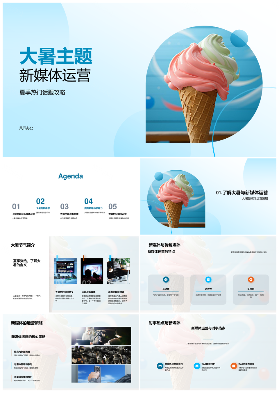 大暑新媒体运营策略结合节气文化夏季促销PPT模板